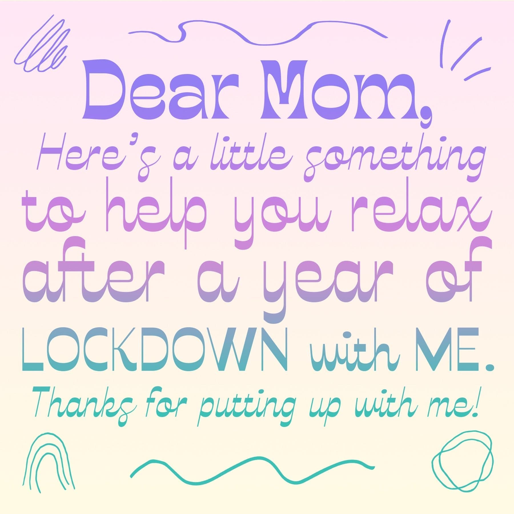 Mom Quote: Dear Mom, Here's a little something to help you relax after a year of lockdown with me. Thanks for putting up with me!