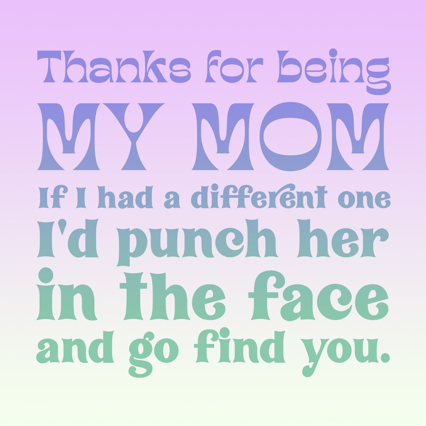 Mom Quote: Thanks for being MY MOM If I had a different one I'd punch her in the face and go find you.