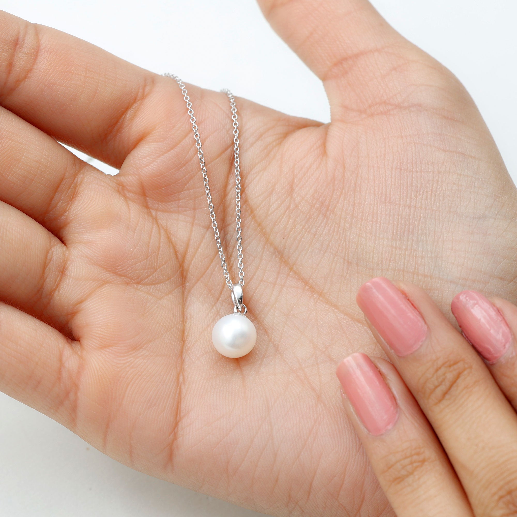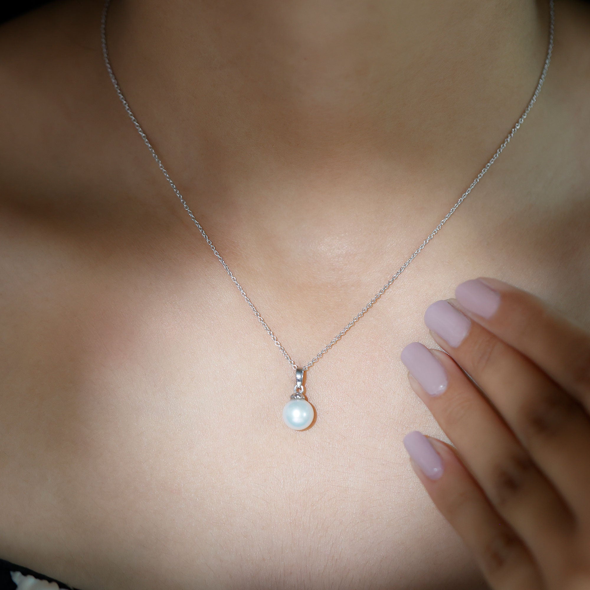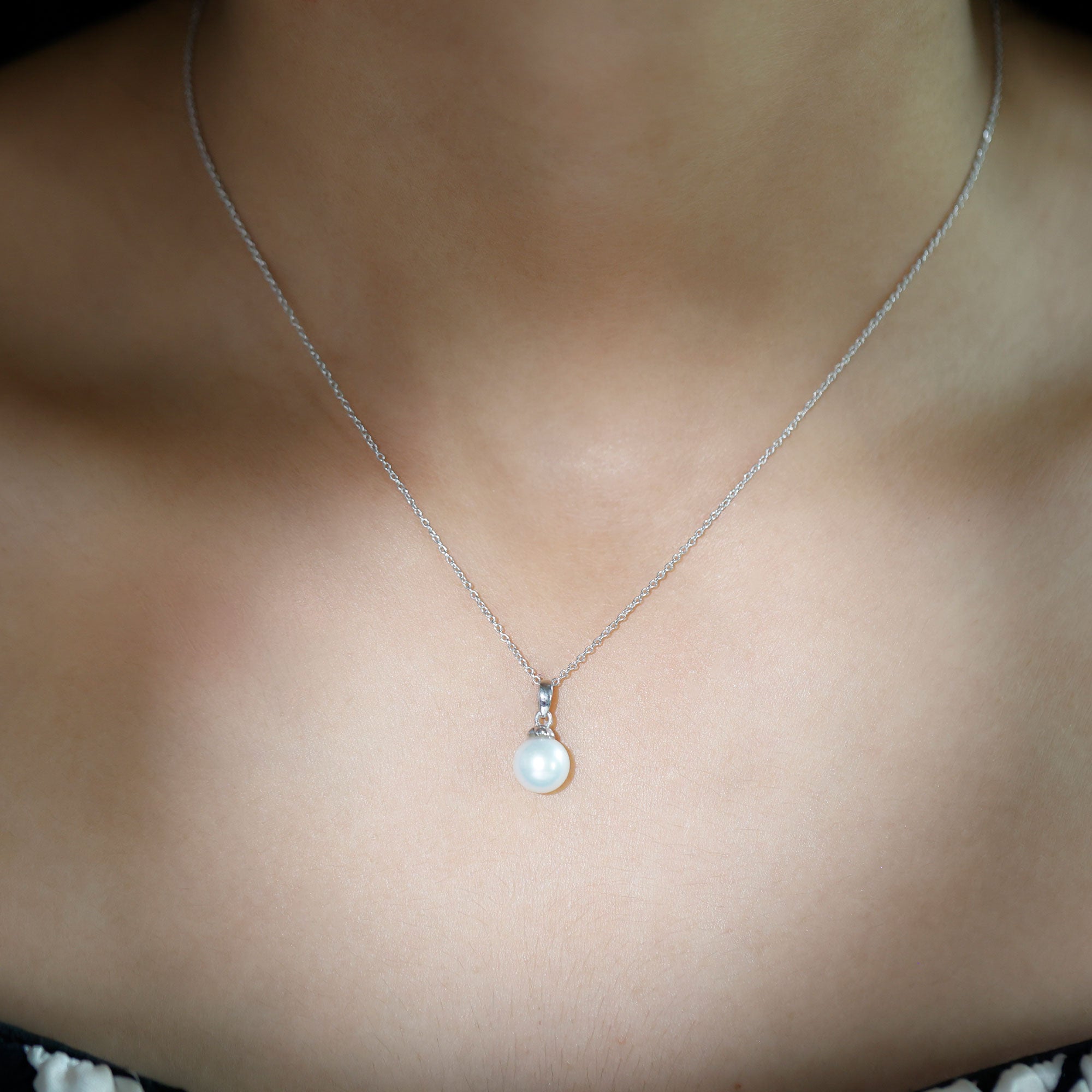 Add a touch of grace to your ensemble with our Freshwater Pearl Pendant Necklace, a simple yet delicate piece for you! The 8mm round-shaped freshwater pearl is exquisitely set in bead setting that is sure to draw eyes with its elegance. The white pearl is connected by a long chain ensuring both security and comfort. Crafted to attention, the pearl pendant offers versatility matches every outfit, and is ideal for your style or preferences. Present it to your mom, wife, or girlfriend and make their day truly memorable.
