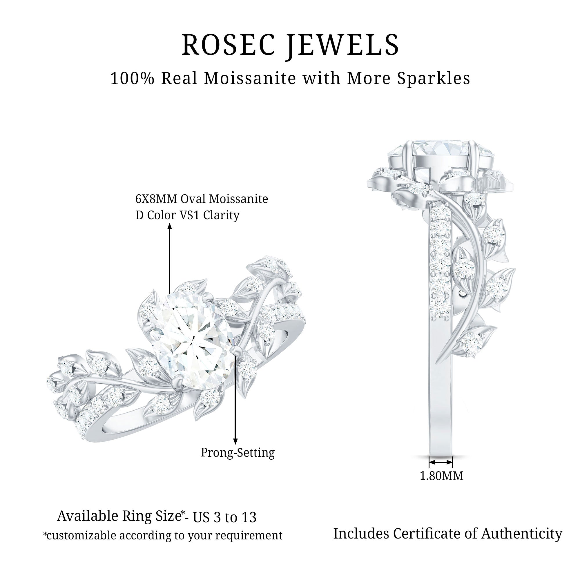Nature Inspired Moissanite Oval Engagement Ring in Silver ‐ D-VS1 / 92.5 Sterling Silver / 8