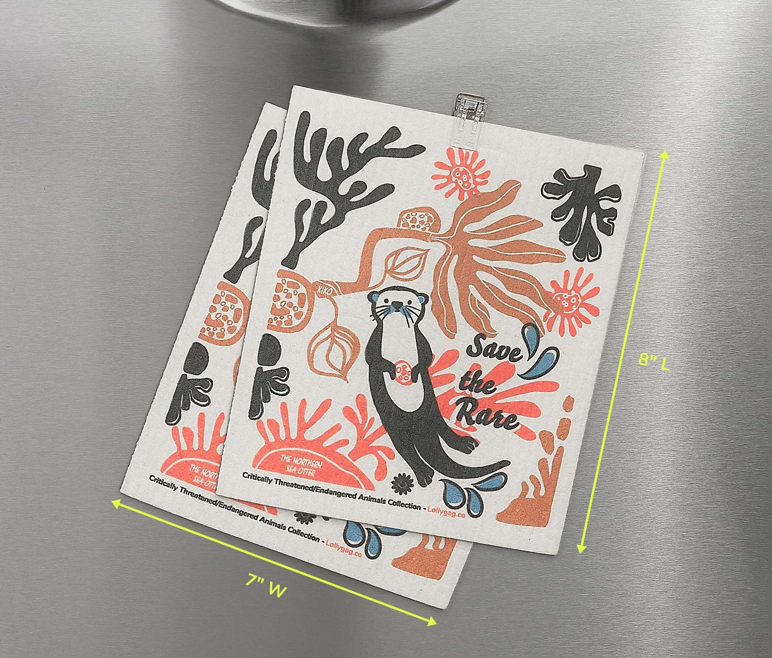 Northern Sea Otter Swedish Dishcloth Sets ‐ 2 Cloths & Magnetic Clip