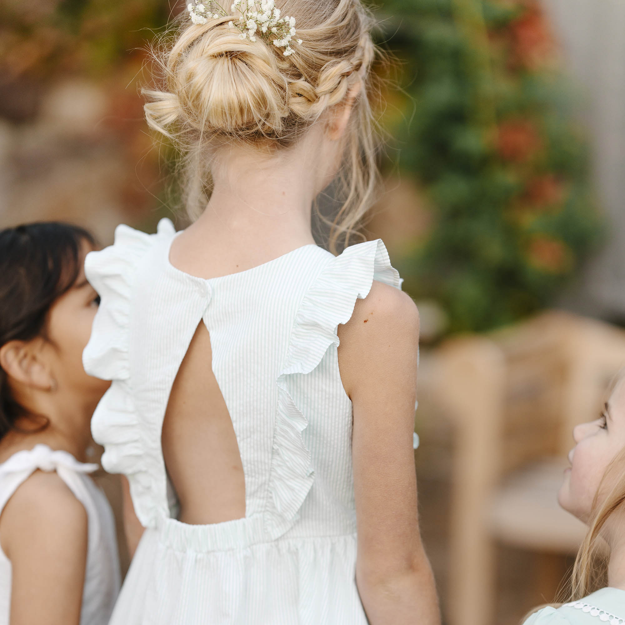 Organic Flutter Sleeve Open Back Dress ‐ 2T / Mint Seersucker