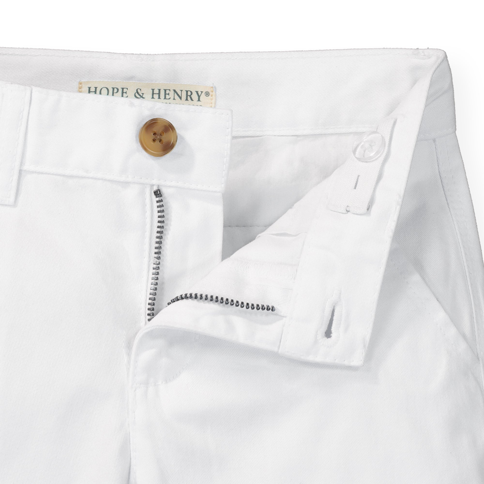 Our modern fit chino short will be the one your boy reaches for every day, on special occasions and weekend play dates alike. Features soft 100% organic cotton twill with a carbon-brushed finish and a hint of stretch, faux horn button, side pockets, back welt pockets, and an adjustable waistband for ultimate comfort and superior fit. These are sure to be worn, loved, and passed down again and again!