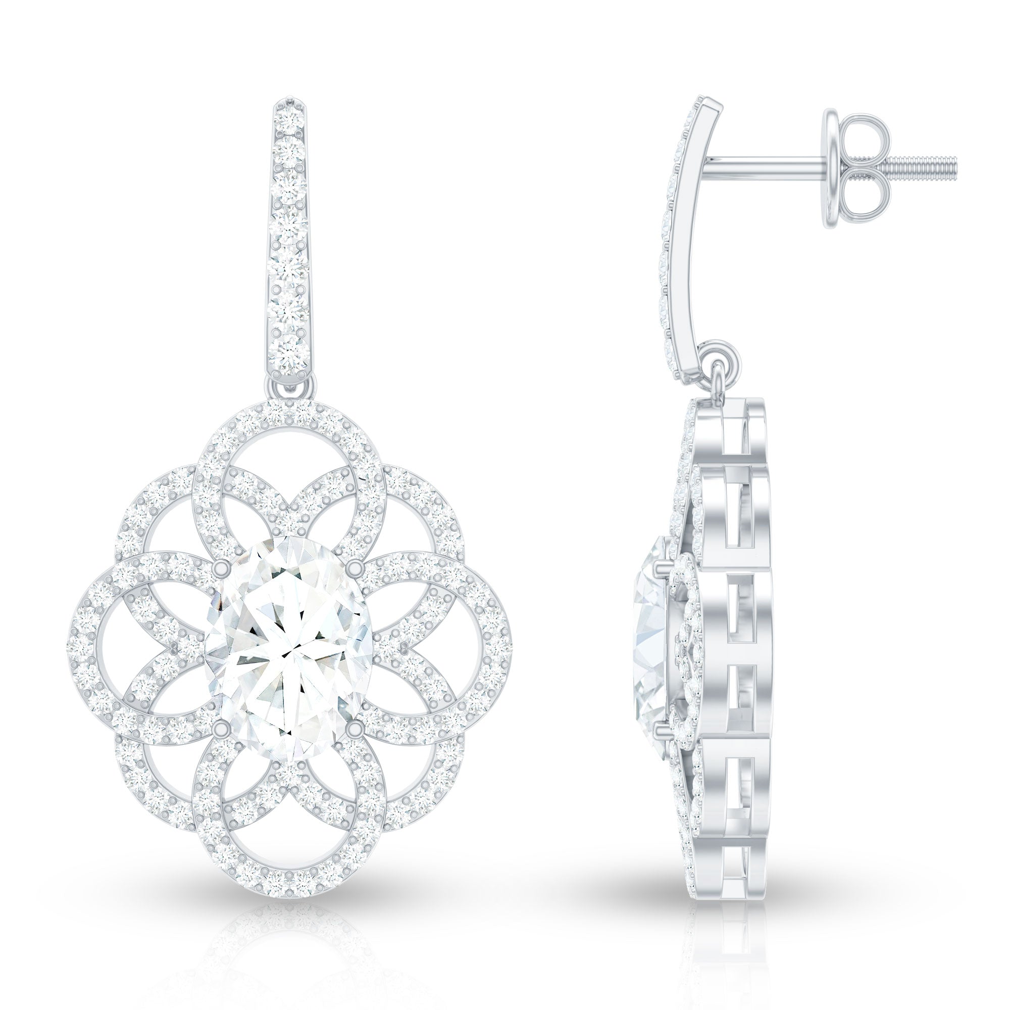 Oval Cubic Zirconia Statement Flower Earrings for Bride ‐ AAAAA / 92.5 Sterling Silver