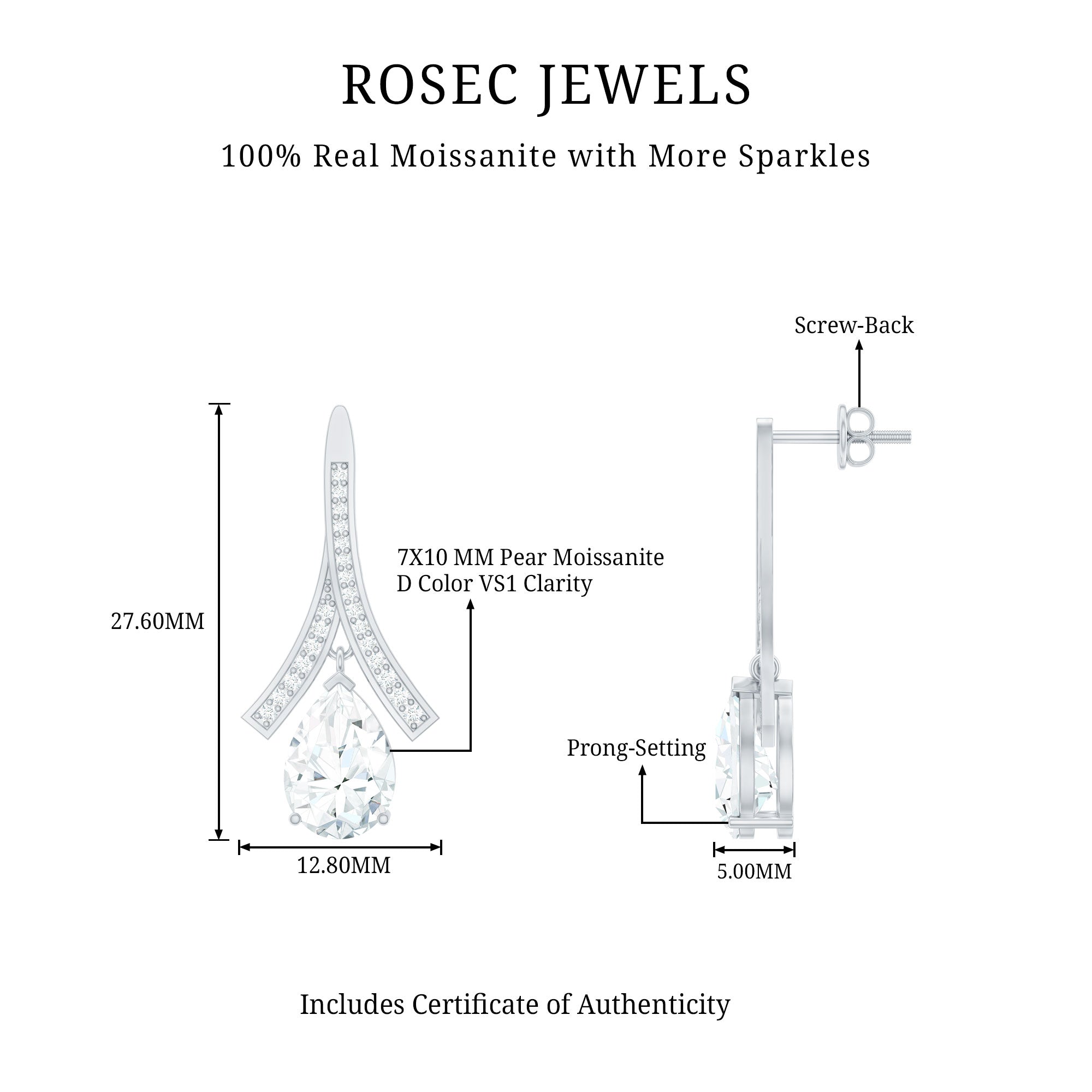 Pear Shaped 7X10 MM Moissanite Dangle Drop Earrings for Wedding ‐ D-VS1 / 92.5 Sterling Silver