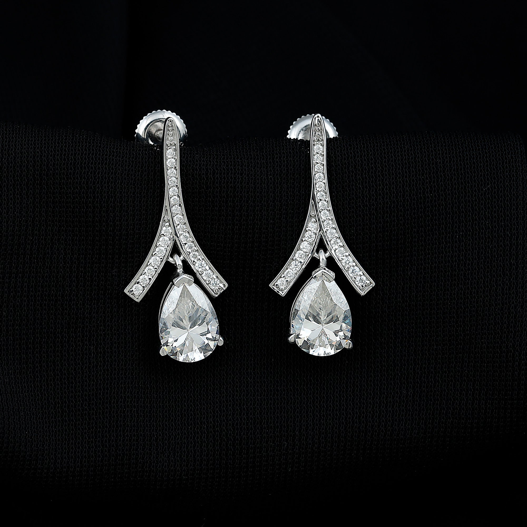 Pear Shaped 7X10 MM Moissanite Dangle Drop Earrings for Wedding