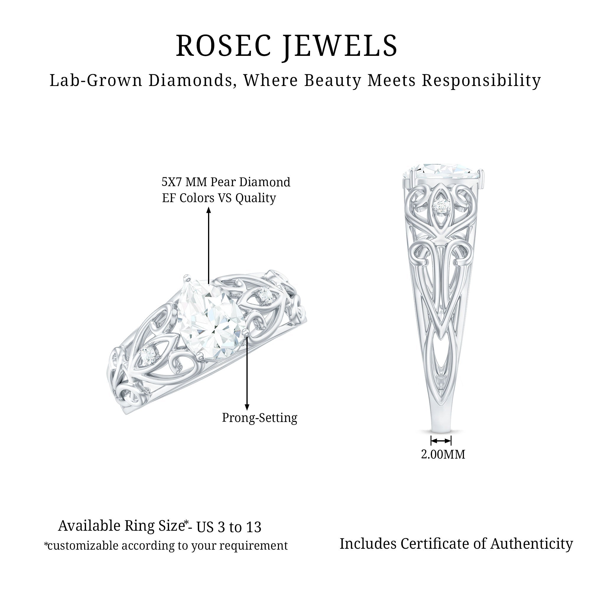 Pear Shaped Lab Created Diamond Solitaire Filigree Ring