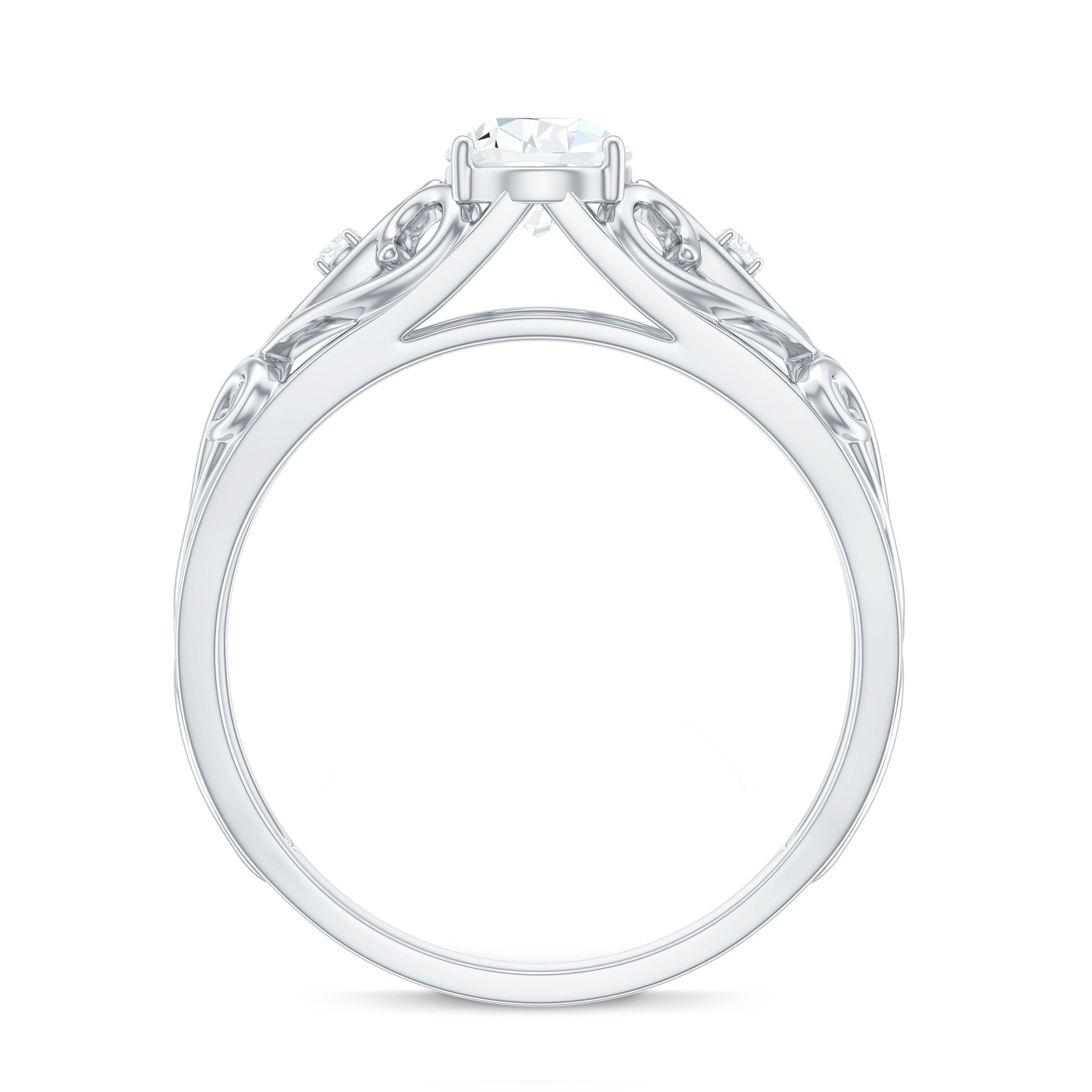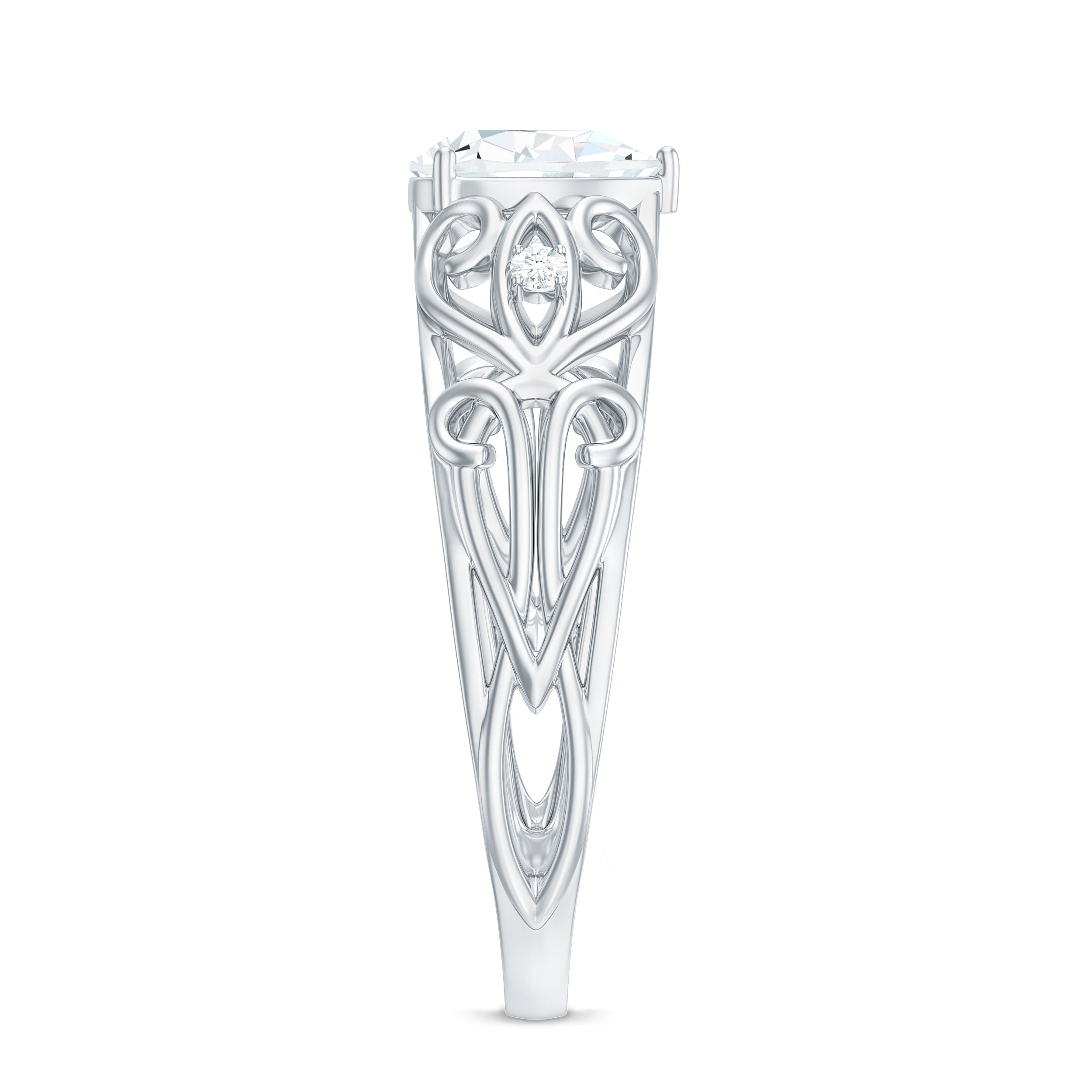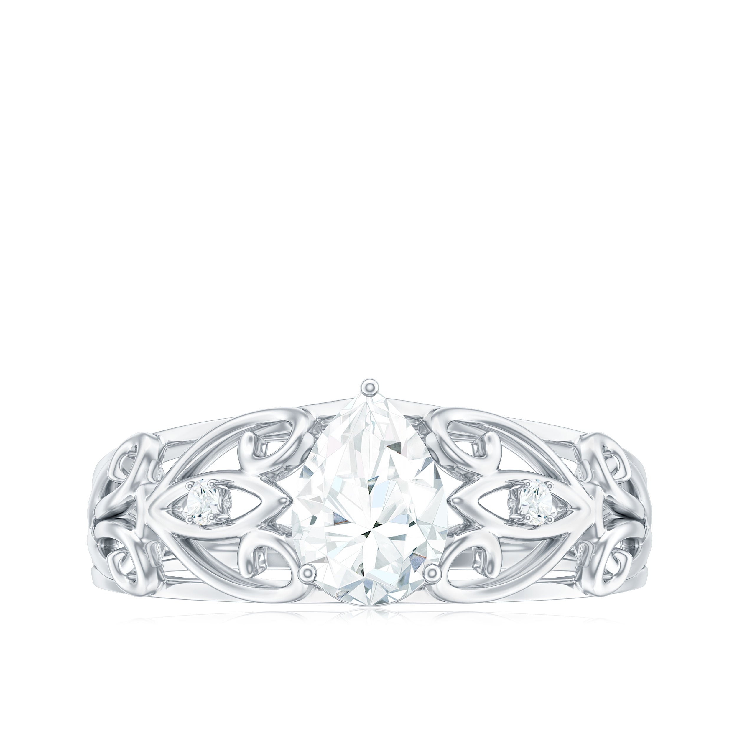 Pear Shaped Lab Created Diamond Solitaire Filigree Ring ‐ Lab - ( EF-VS ) / 18K White Gold / 4.5