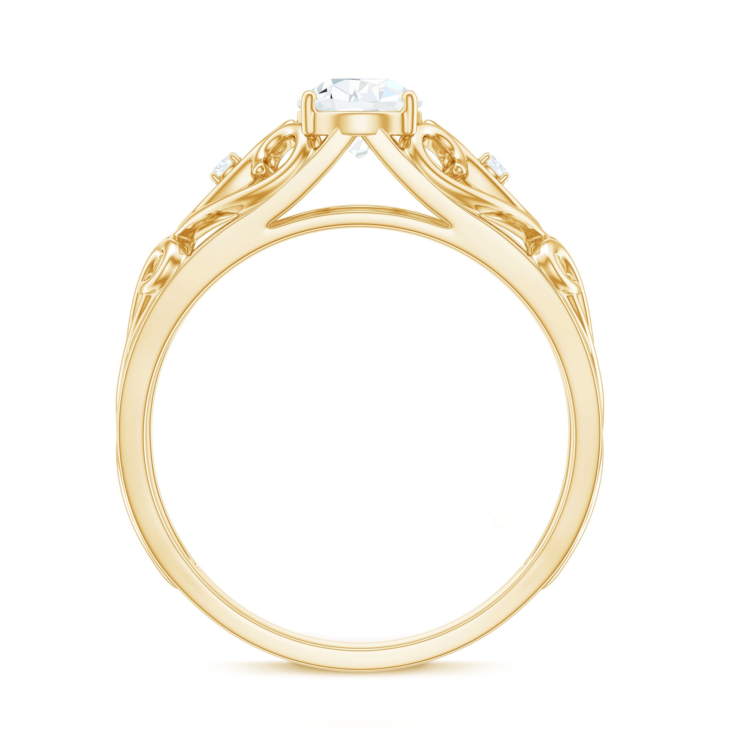 Pear Shaped Lab Created Diamond Solitaire Filigree Ring ‐ Lab - ( EF-VS ) / 14K Yellow Gold / 4.5