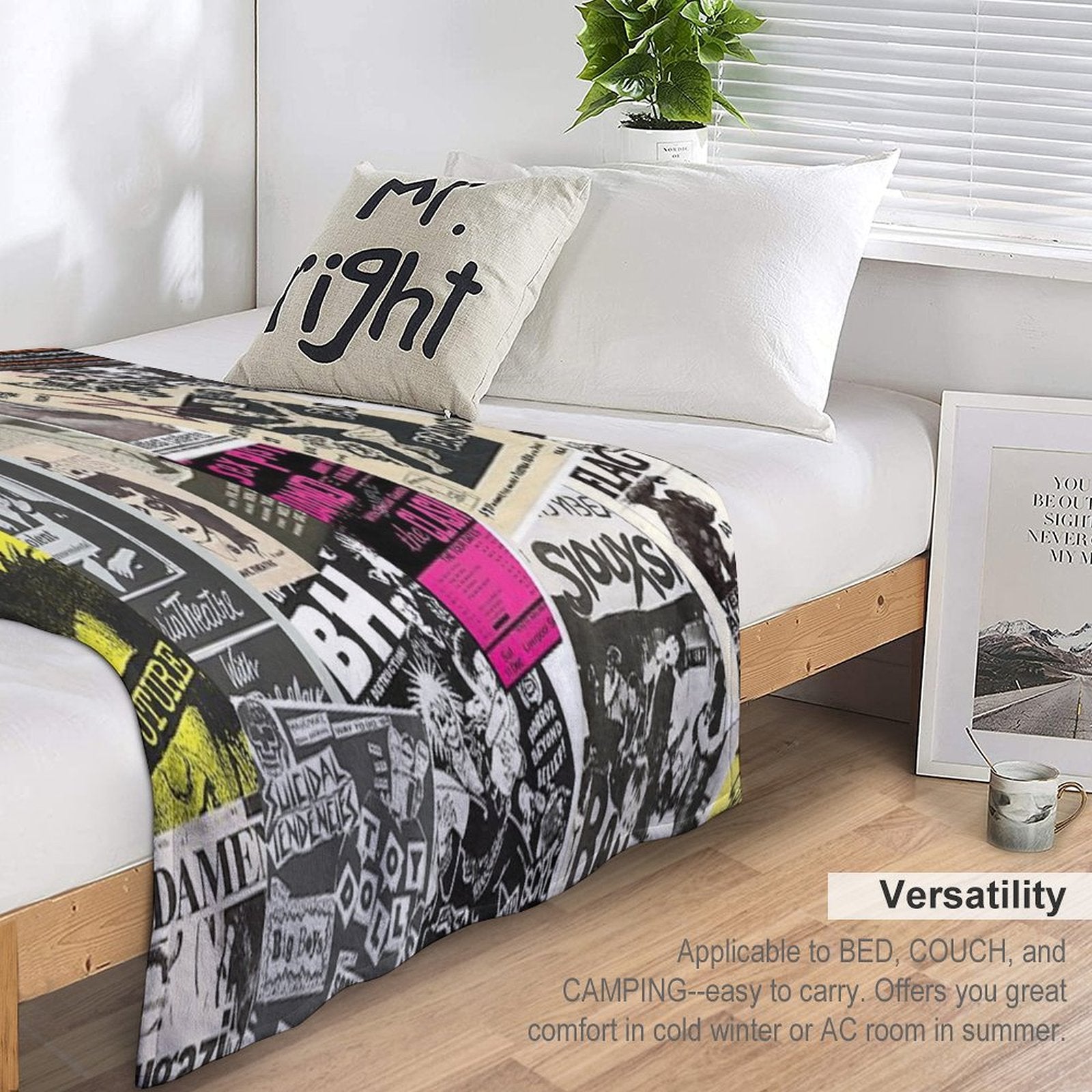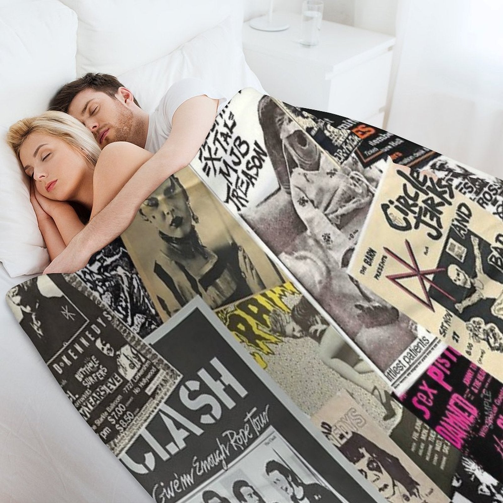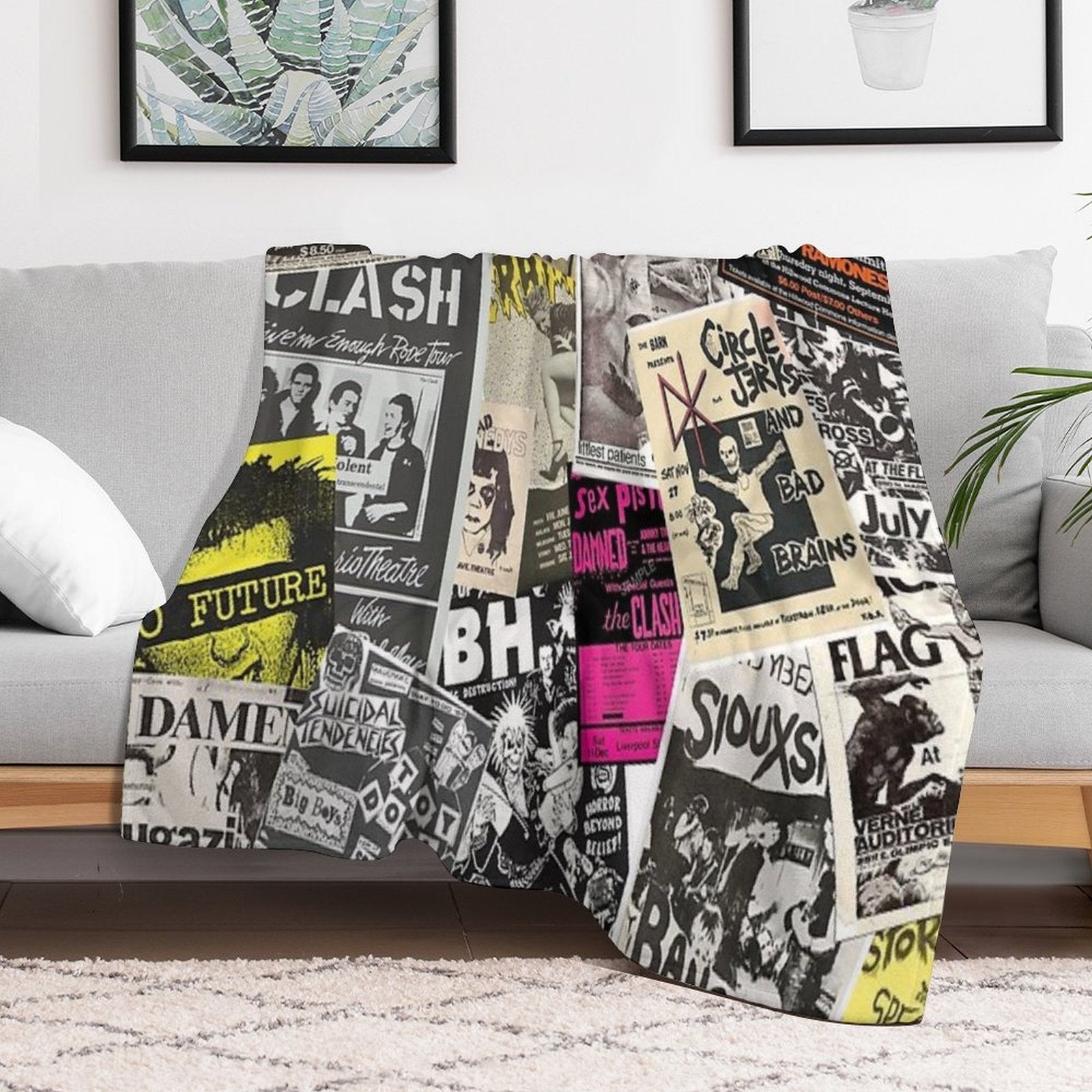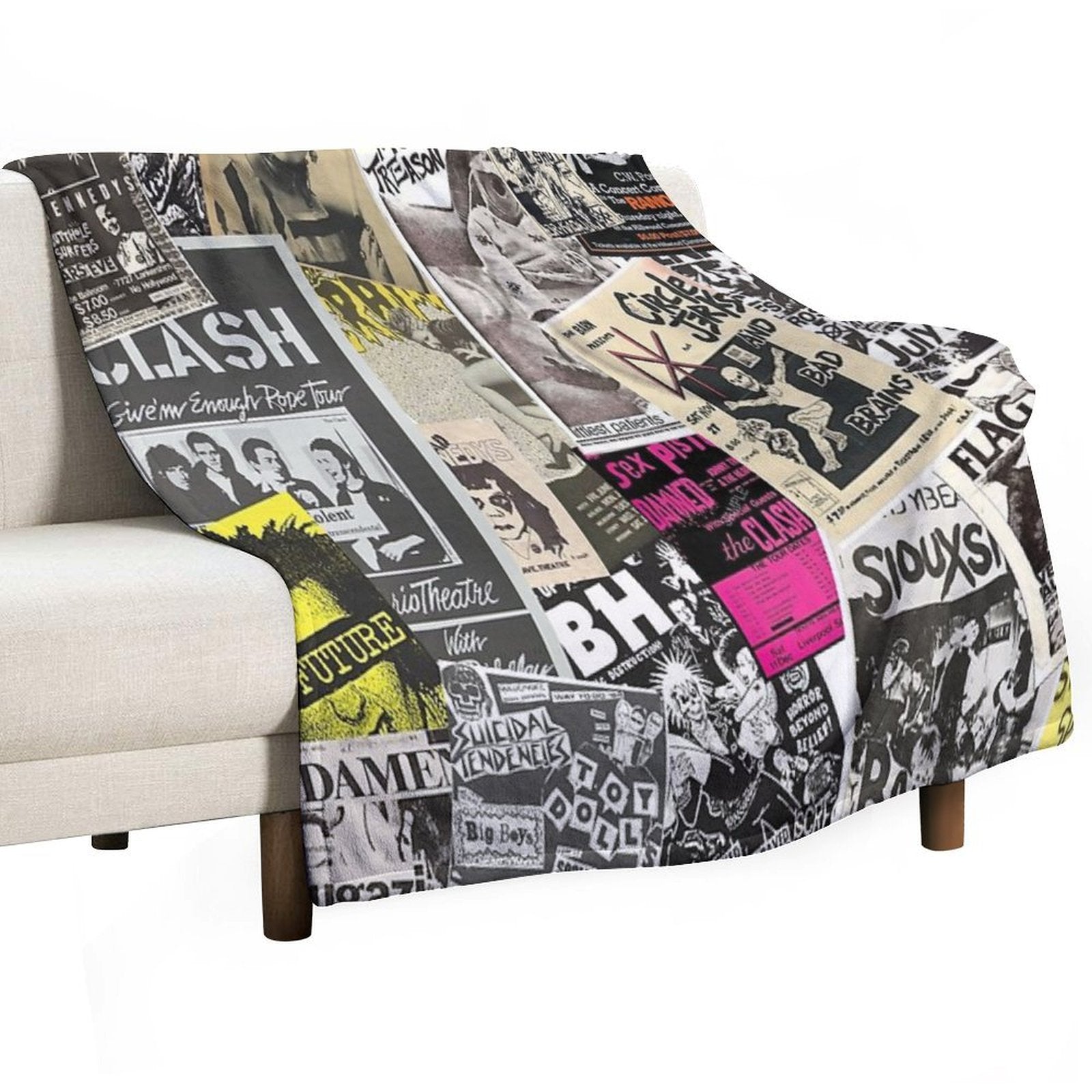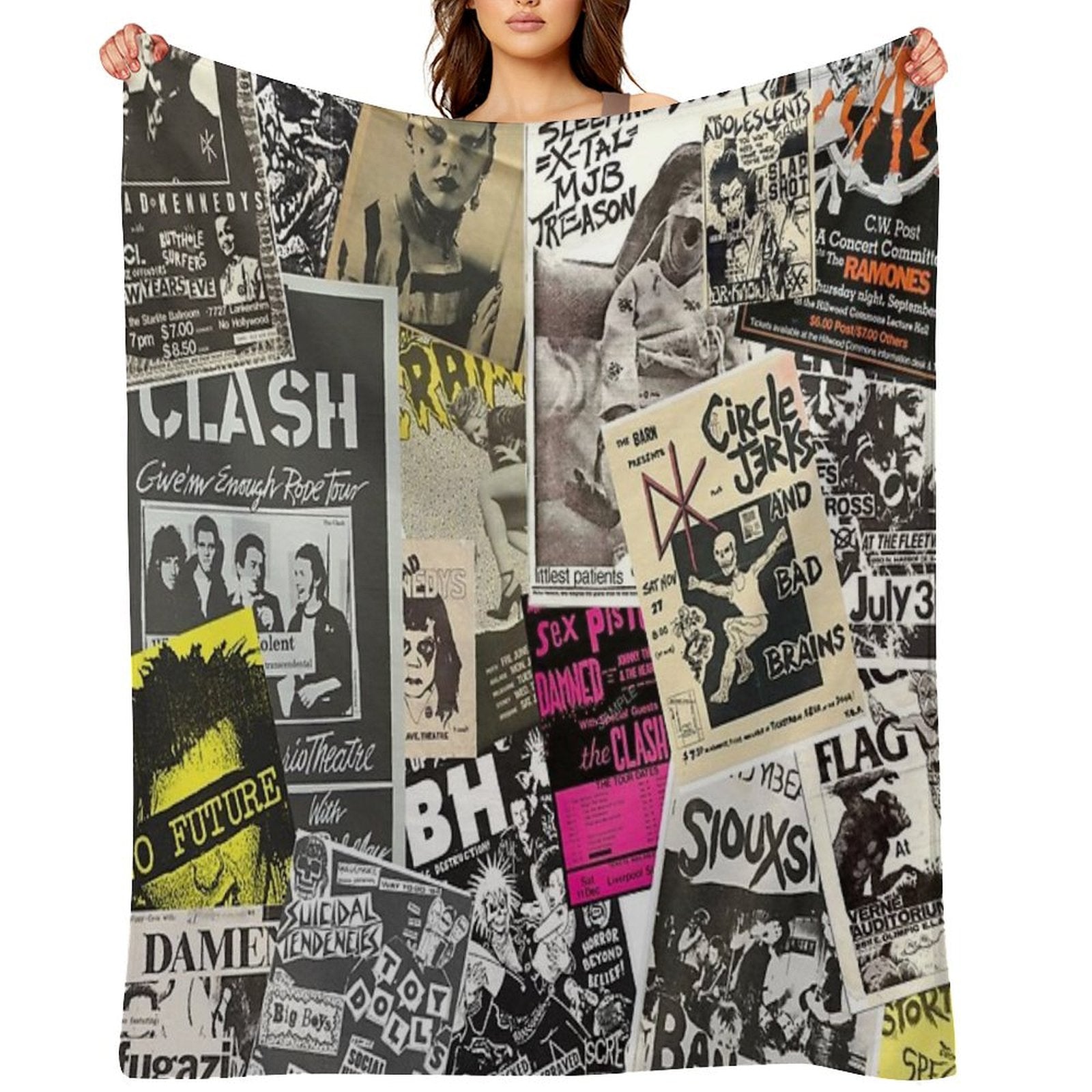Punk Rock Music Flyers Collage Throw Blanket ‐ Punk Rock Music Flyers Collage / 60"×80"