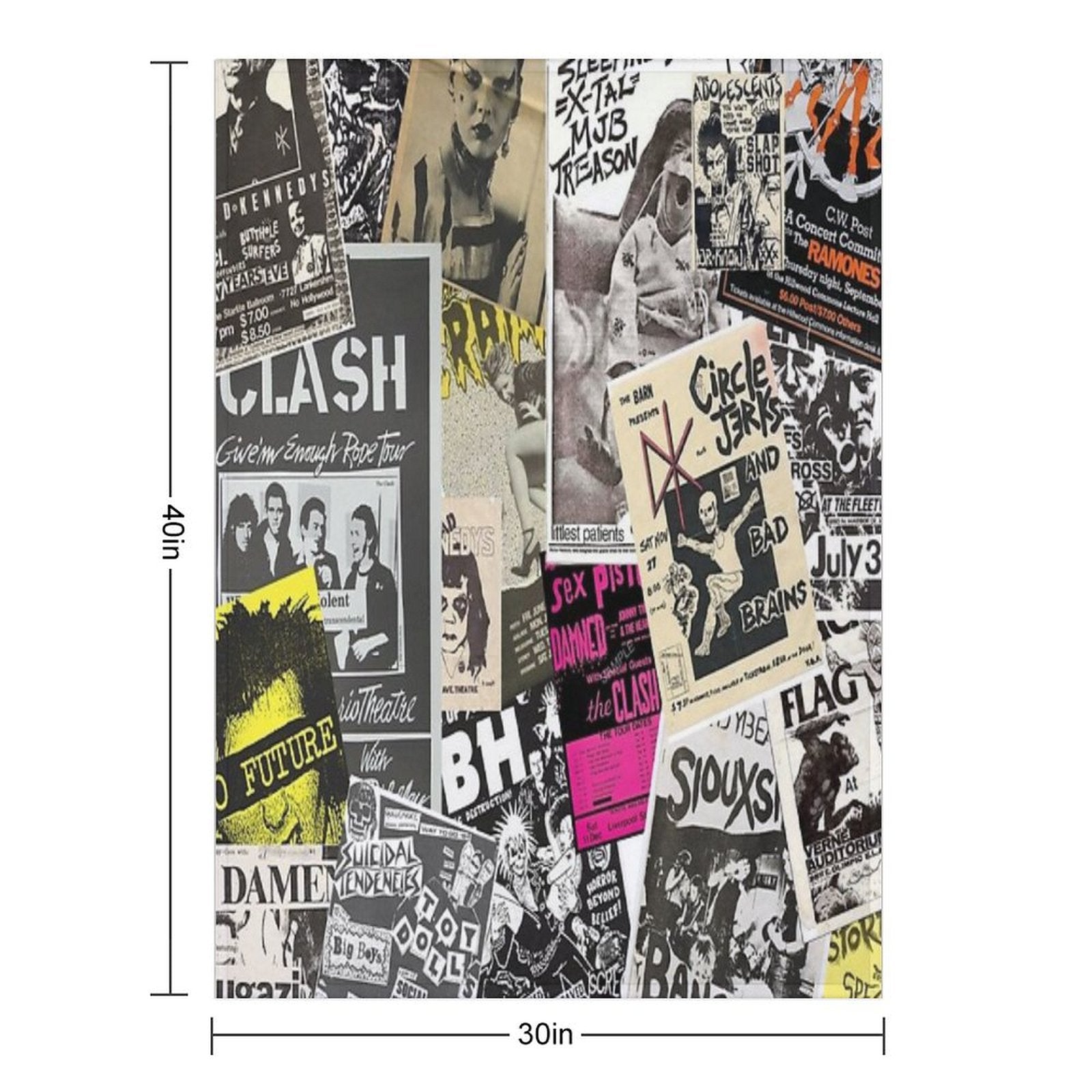 Punk Rock Music Flyers Collage Throw Blanket ‐ Punk Rock Music Flyers Collage / 30"×40"