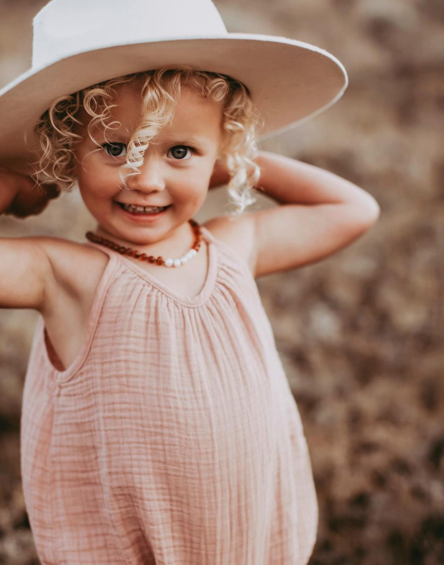 Raw Cognac Baltic Amber + Pearls || Necklace ‐ 13" Child Necklace