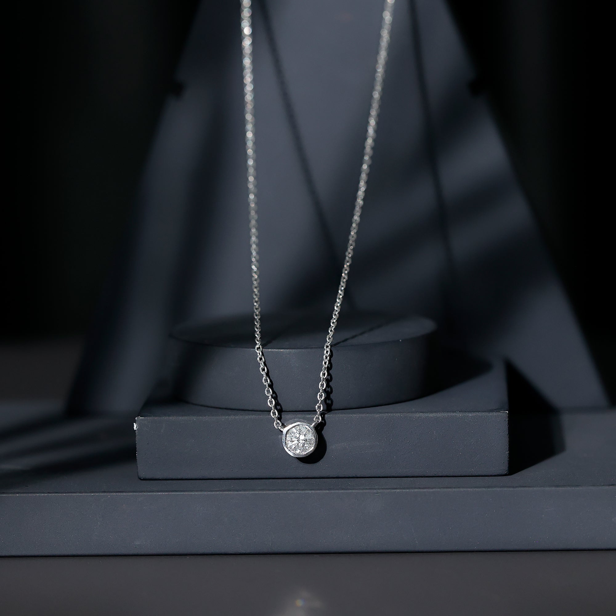 Make your neckline shine by wearing this Lab Grown Diamond Pendant, which is especially made to complete the look for your special day. The Solitaire Pendant Necklace is crafted with white gold plated silver and features a 5 MM Round Shape Cultured Diamond secured in Bezel Setting. This Classic Pendant hangs with a sturdy cable chain, which makes it beautifully sit on the neckline. The minimalist necklace can be adorned solely for a casual look or can be layered up with other layering necklace to create a mesmerizing stack. This minimal pendant is perfect for day-to-day shine with formal or casual looks. This Bezel Set Pendant can also be presented as a gift to your mom, wife, or sister as a token of affection.