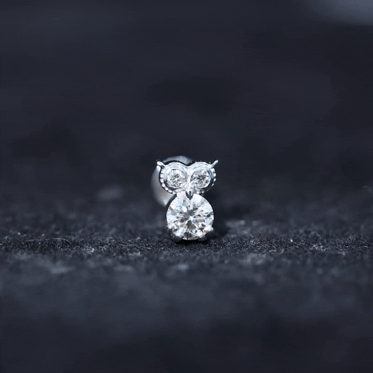 Round Cut Moissanite Owl Earring for Cartilage Piercing