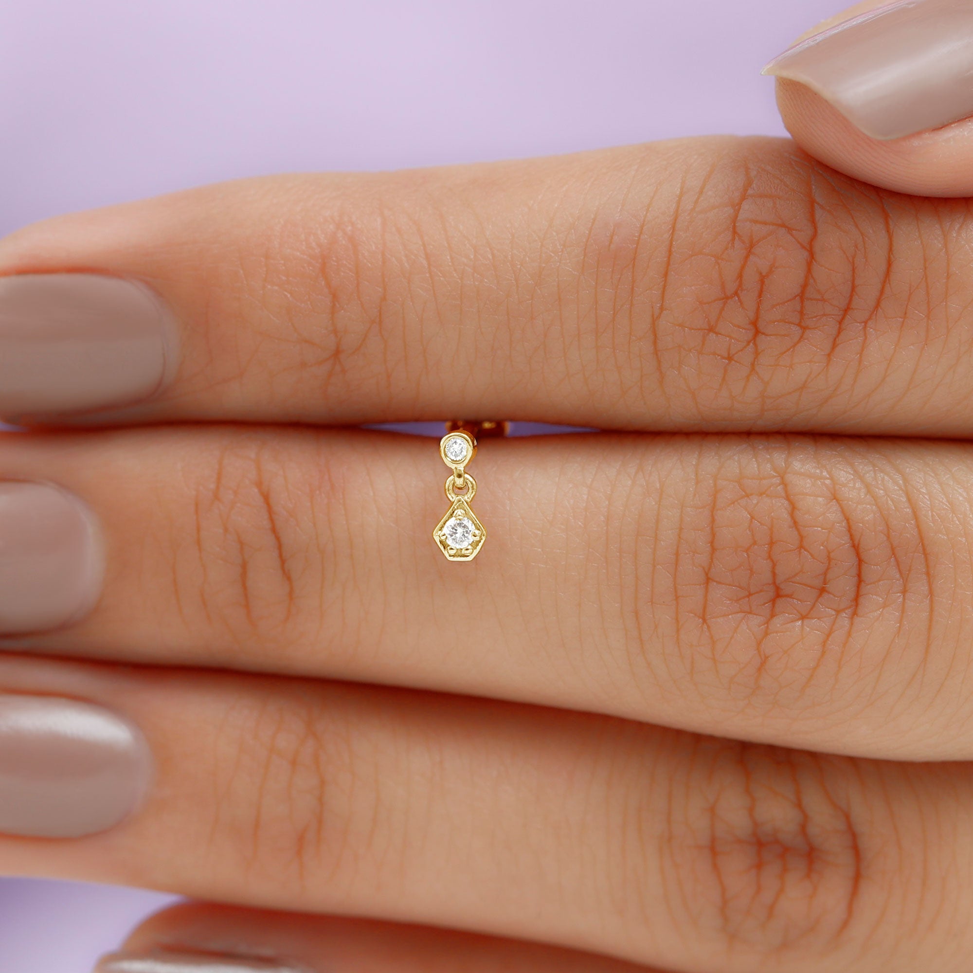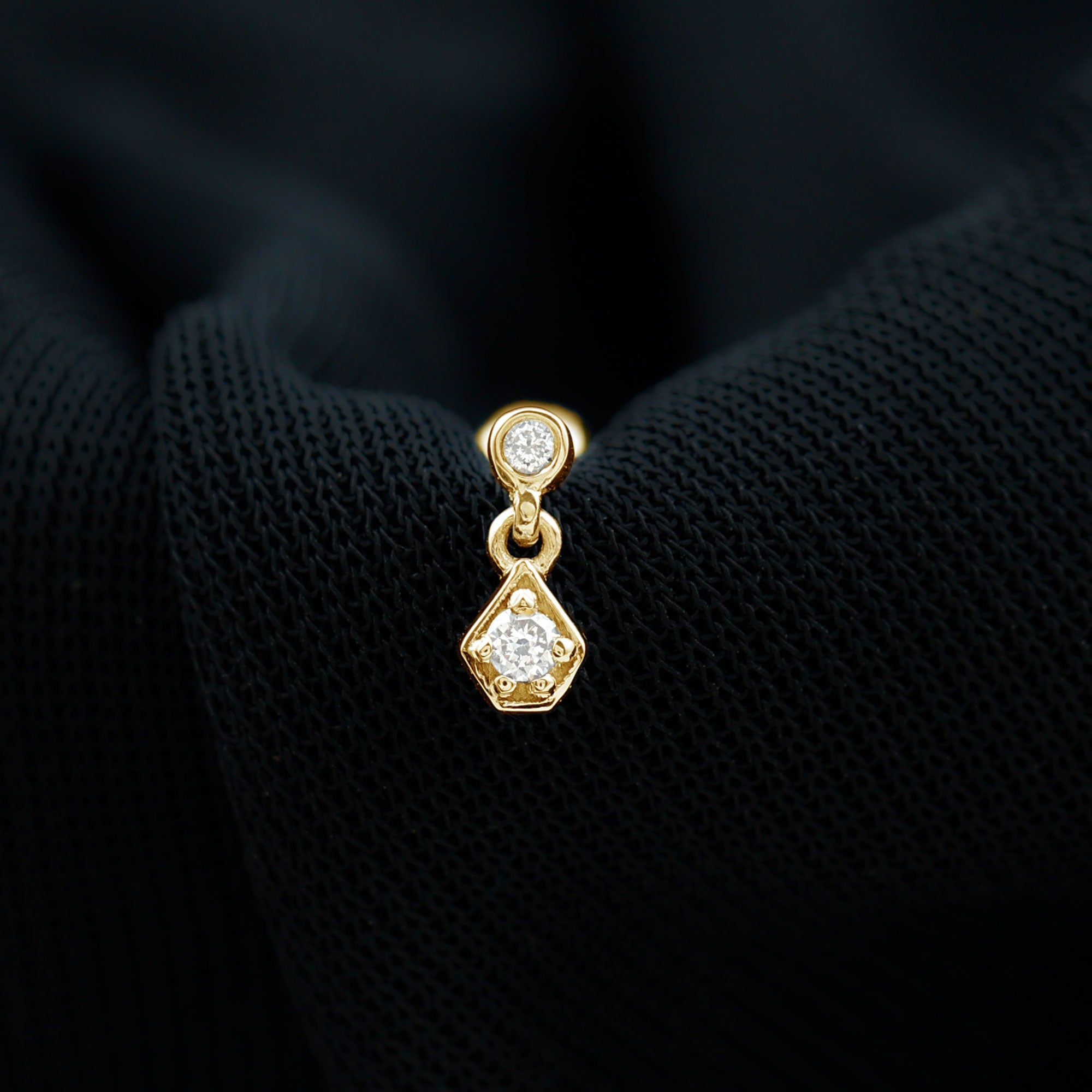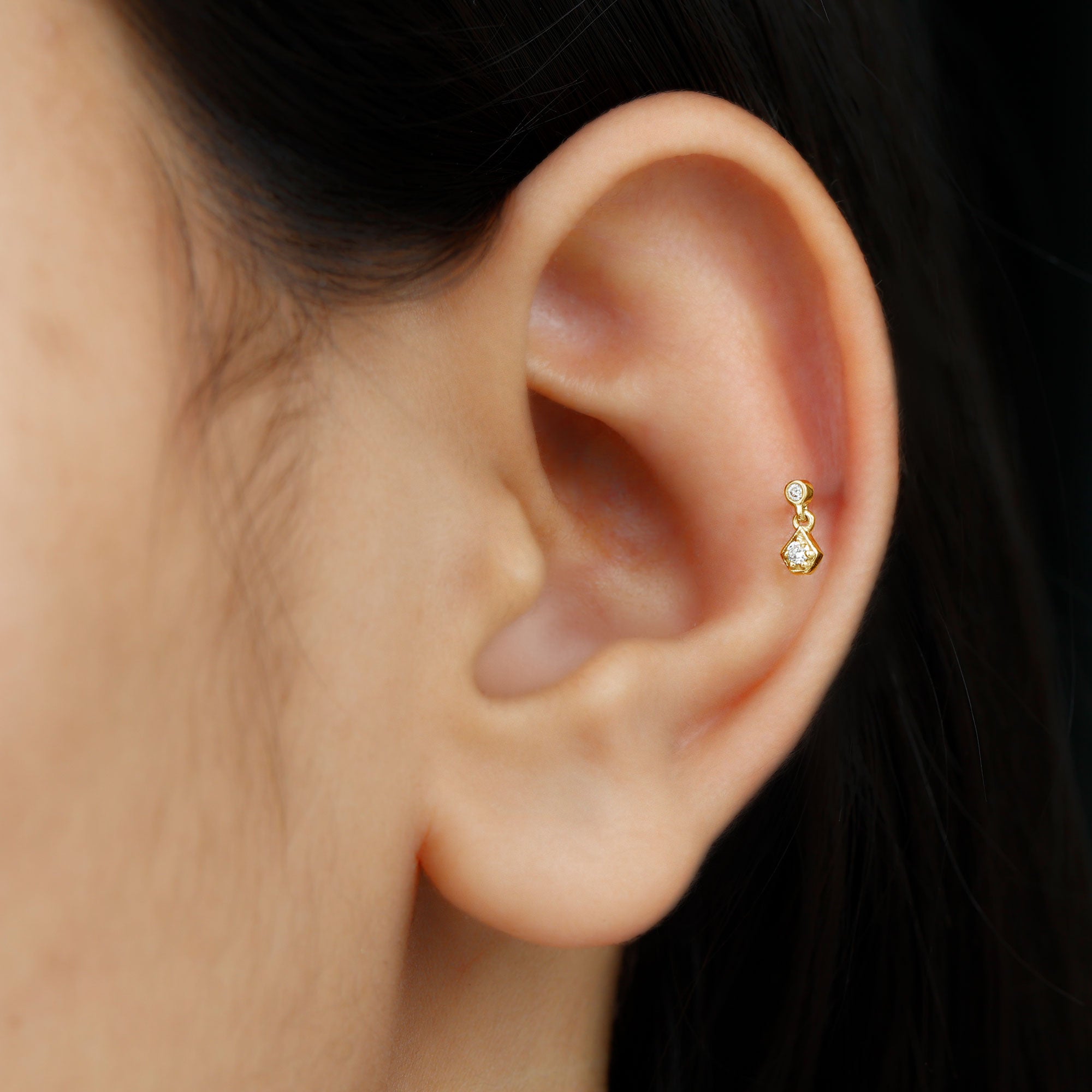 This elegant Diamond Simple Helix Drop Earring is crafted in Gold and adorned with sparkling Round Cut Diamond on a unique design with a small Round Cut Diamond hanging as a drop. We offer handcrafted 100% real and certified diamonds with stunning designs at affordable prices. Our jewelry arrives ready to gift in our Signature Box. The Tiny Diamond Earring can be styled on your Helix, Rook, Tragus, Cartilage, or Upper Lobe Piercing and comes with a Flat Back Closure for a comfortable fit. Present this Cartilage Earring as a precious Birthday, Anniversary, New Years, or Christmas Gift for her, and she will never want to take it off.