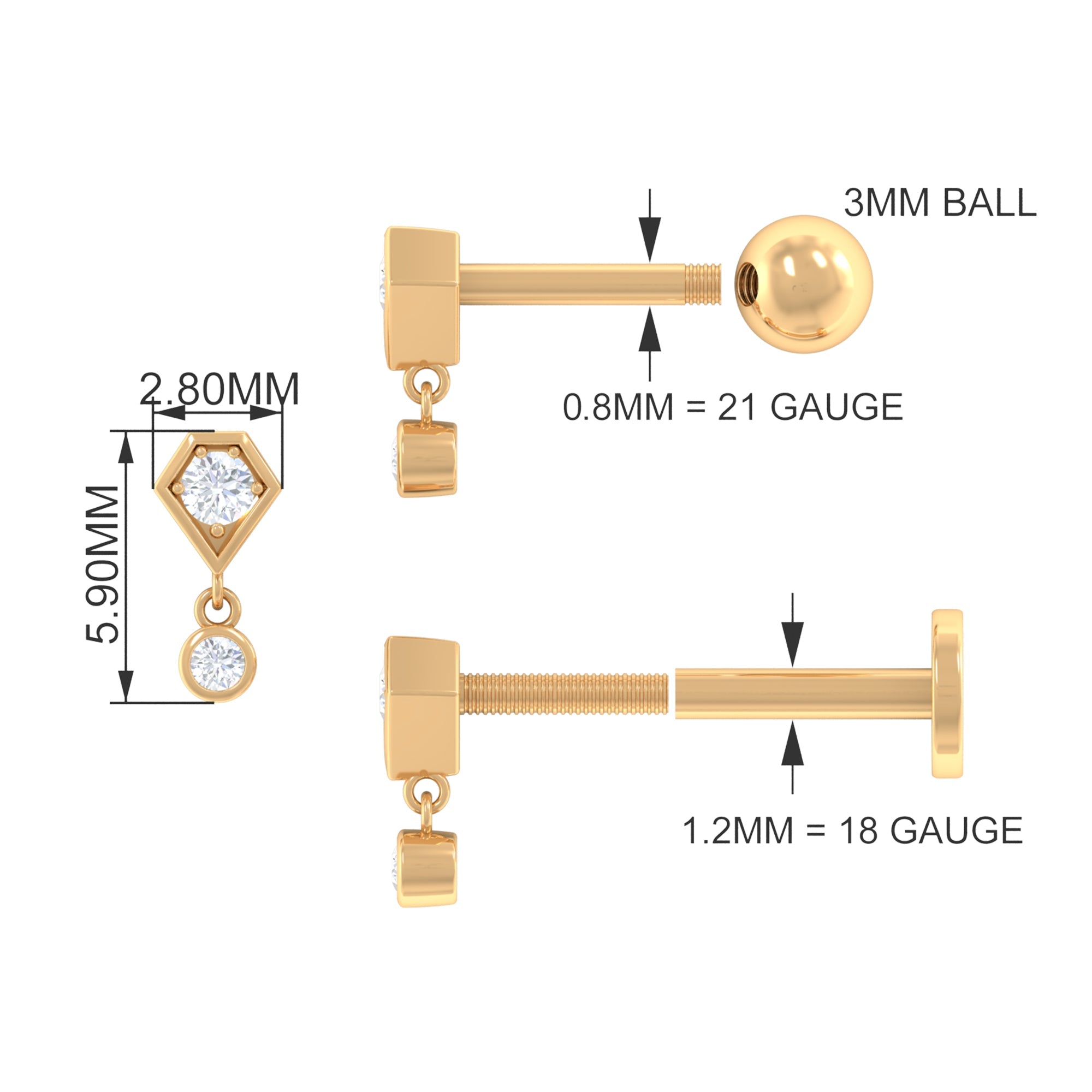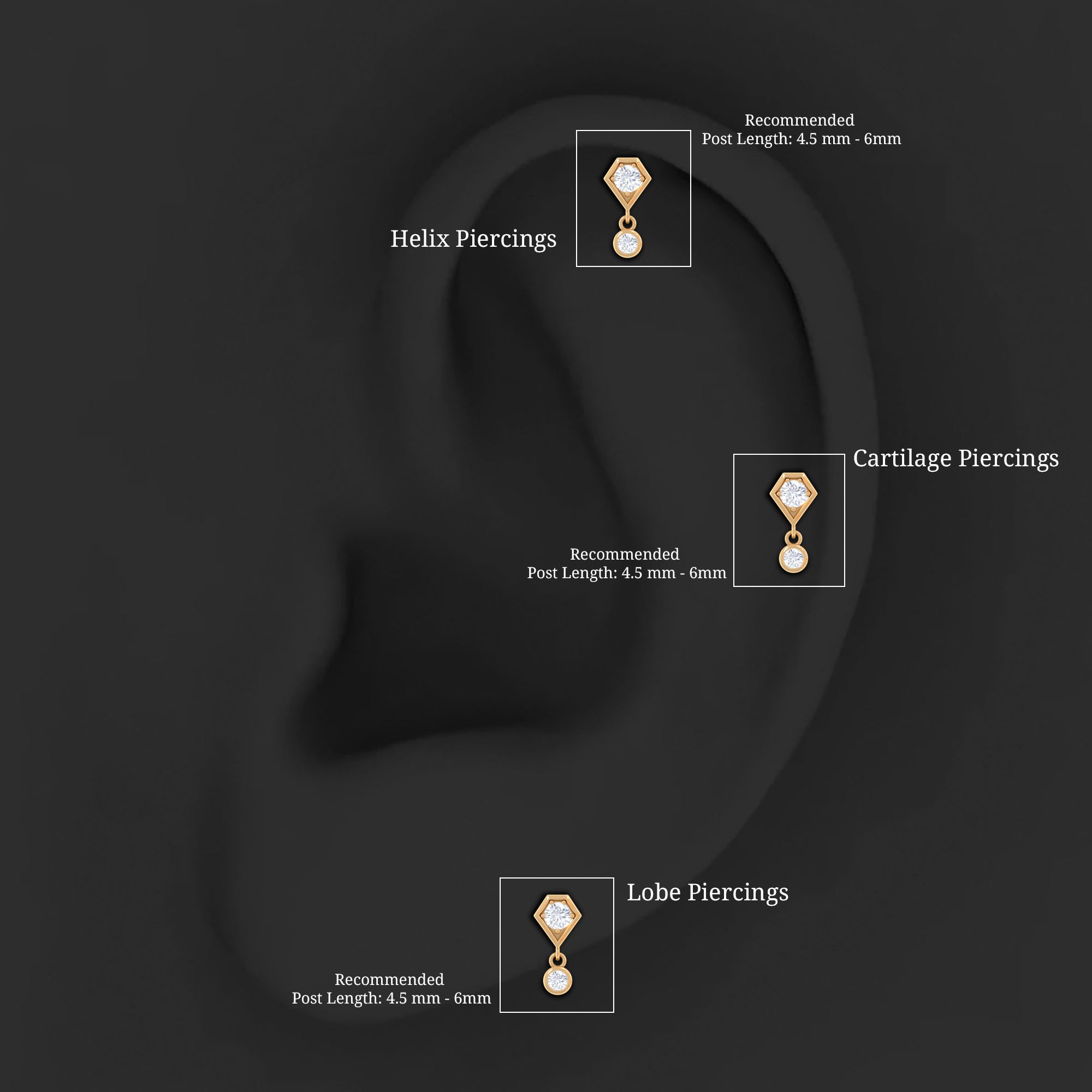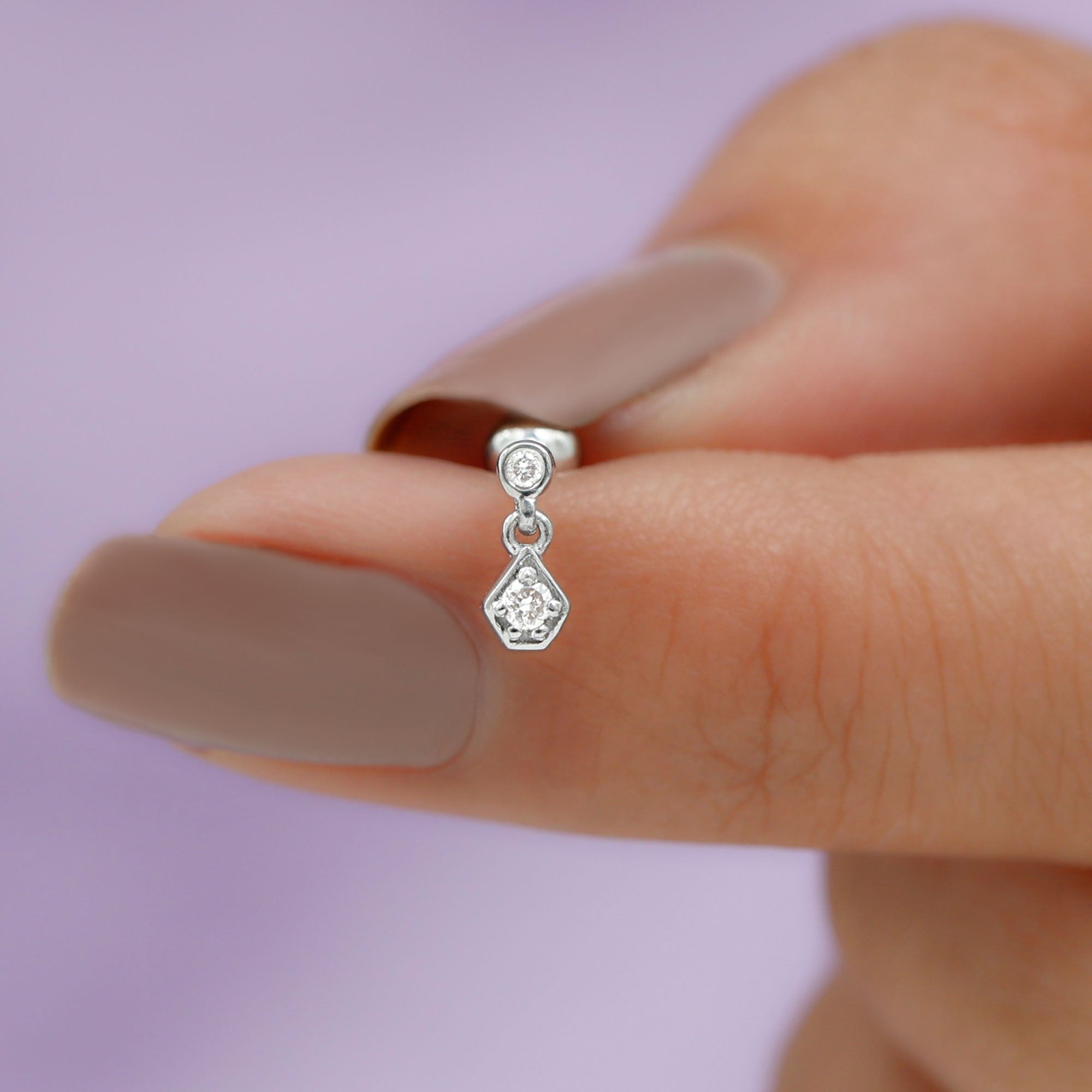 This elegant Diamond Simple Helix Drop Earring is crafted in Gold and adorned with sparkling Round Cut Diamond on a unique design with a small Round Cut Diamond hanging as a drop. We offer handcrafted 100% real and certified diamonds with stunning designs at affordable prices. Our jewelry arrives ready to gift in our Signature Box. The Tiny Diamond Earring can be styled on your Helix, Rook, Tragus, Cartilage, or Upper Lobe Piercing and comes with a Flat Back Closure for a comfortable fit. Present this Cartilage Earring as a precious Birthday, Anniversary, New Years, or Christmas Gift for her, and she will never want to take it off.