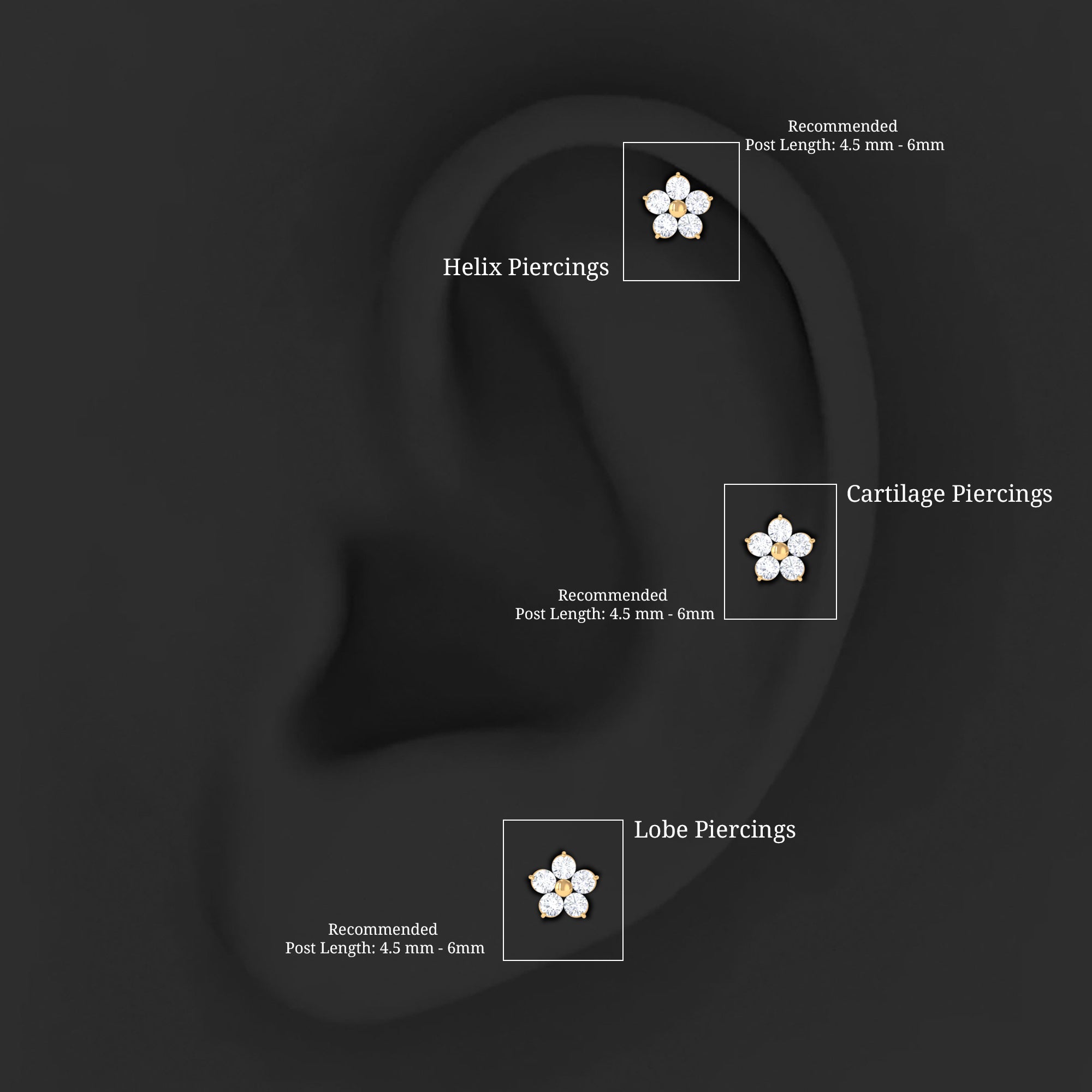 Round Moissanite Simple Flower Earring for Conch Piercing