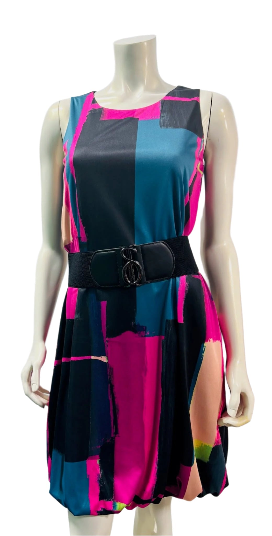 Stand out in style with the Samuel Dong bubble dress! This beauty has an artistic and playful print and functional pockets! Wear loose or belted for a more fitted look. This dress is fully lined.