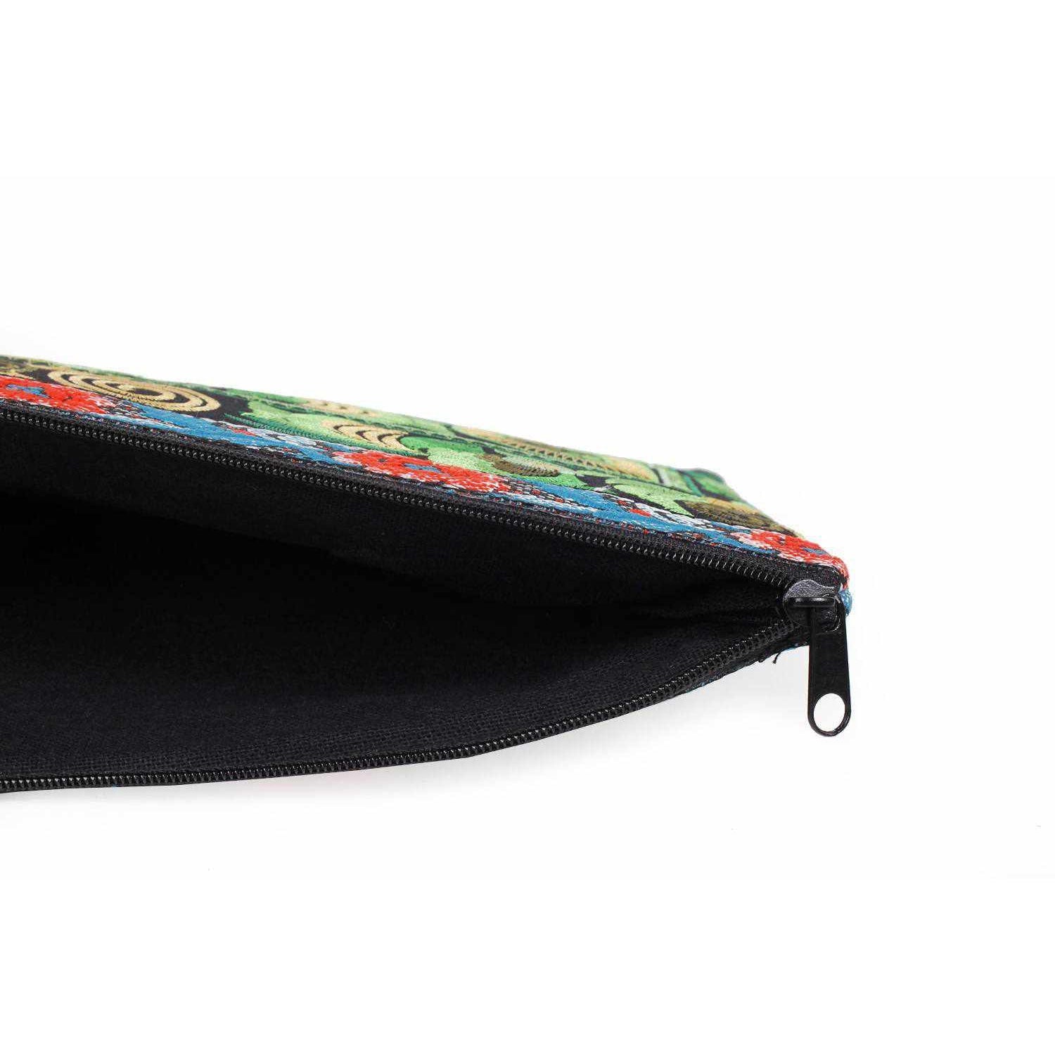 Don't miss out on one of our best selling items! This wristlet is part of our Thai embroidery collection that handcrafted with care by our artisan partners using Hill-Tribe fabrics. The bag has a zipper closure and is lined inside with an inside zippered pocket. It comes with a D ring on the side which allows you to attach to keys or a zipper pull!