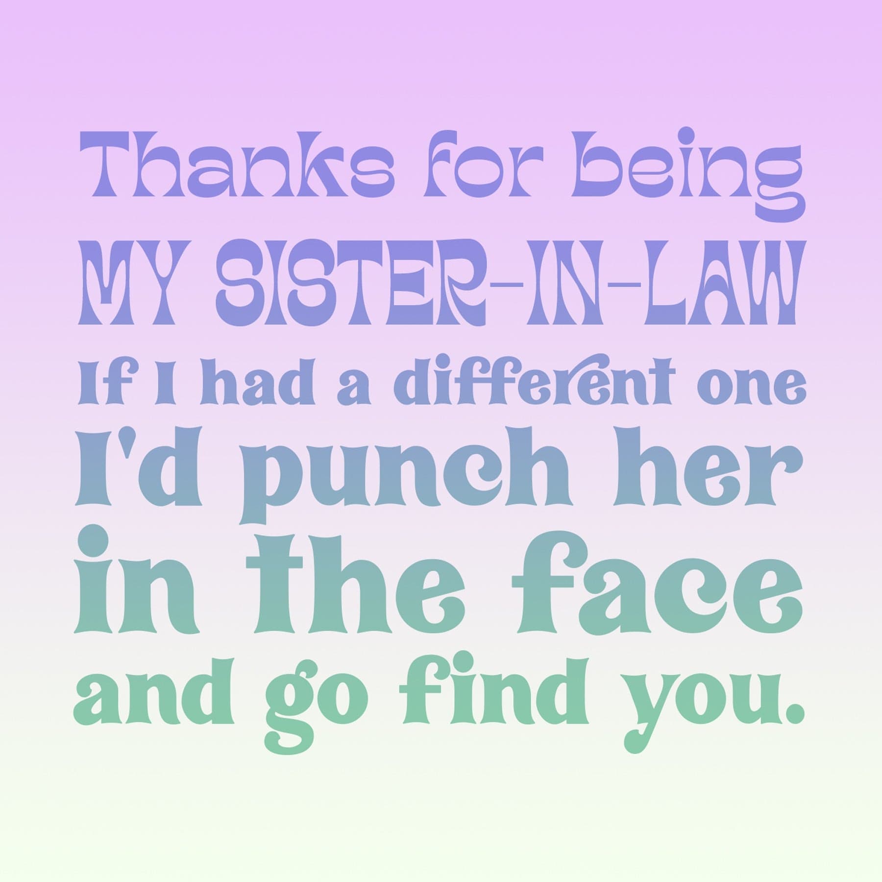 Sister-In-Law Quote: Thanks for being MY SISTER-IN-LAW If I had a different one I'd punch her in the face and go find you.