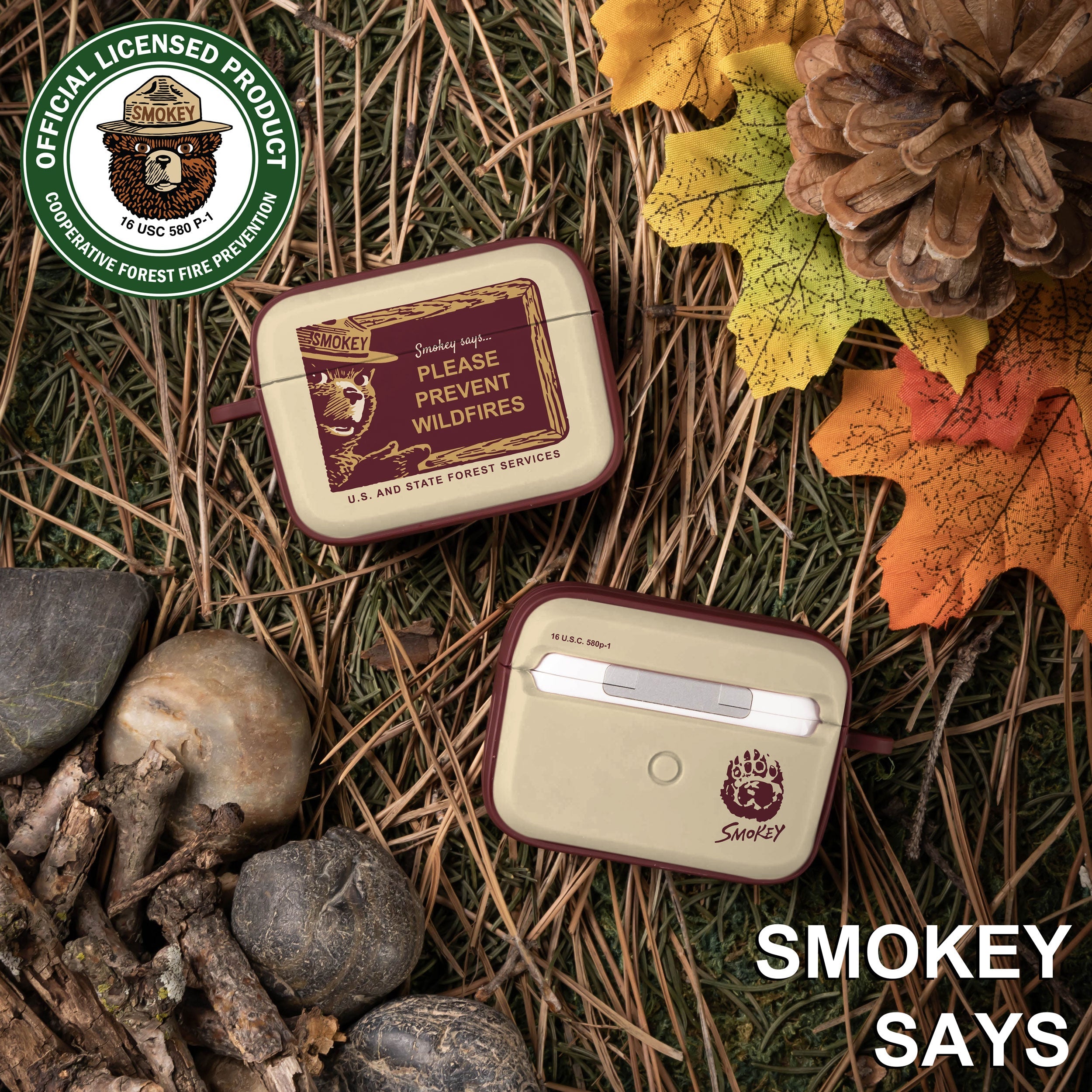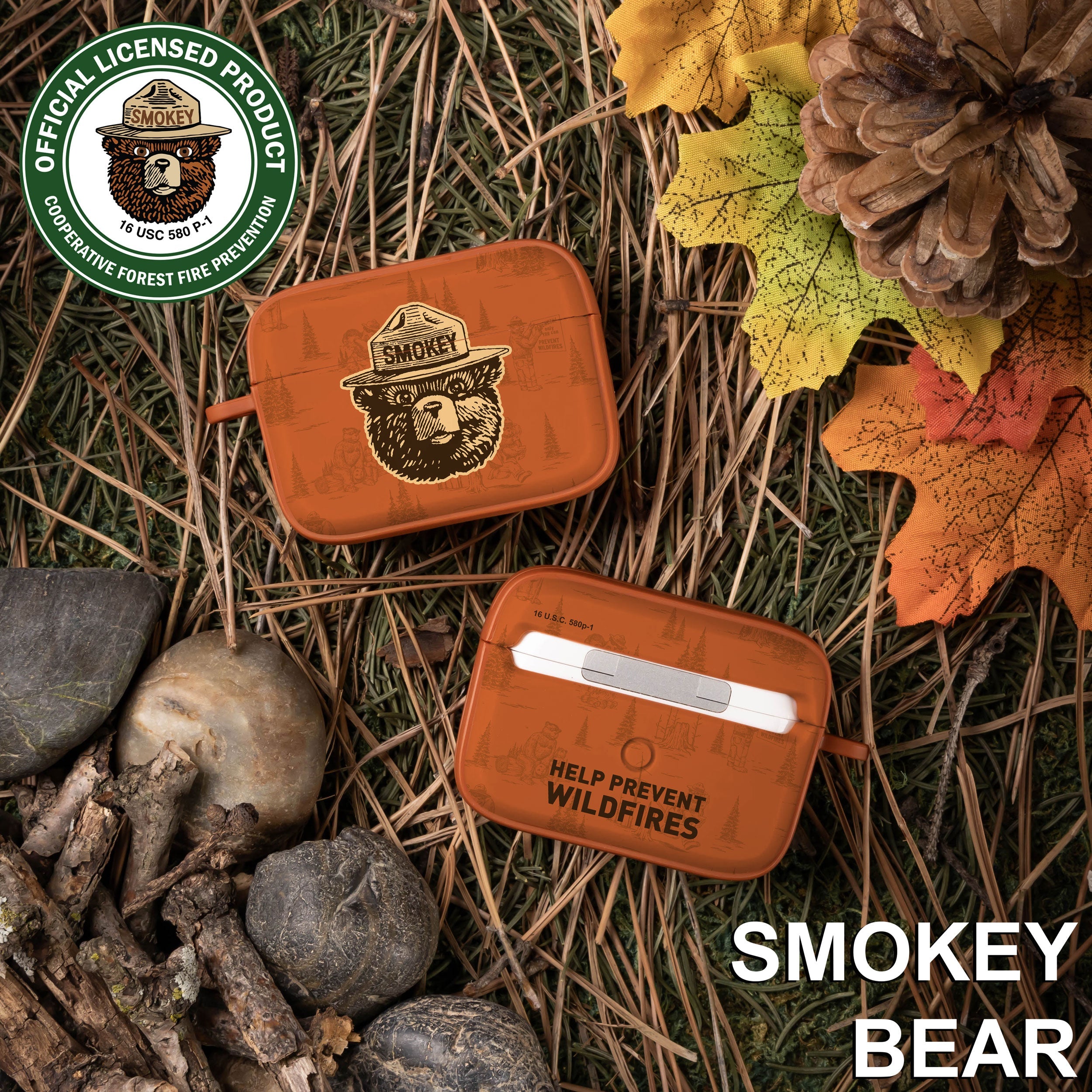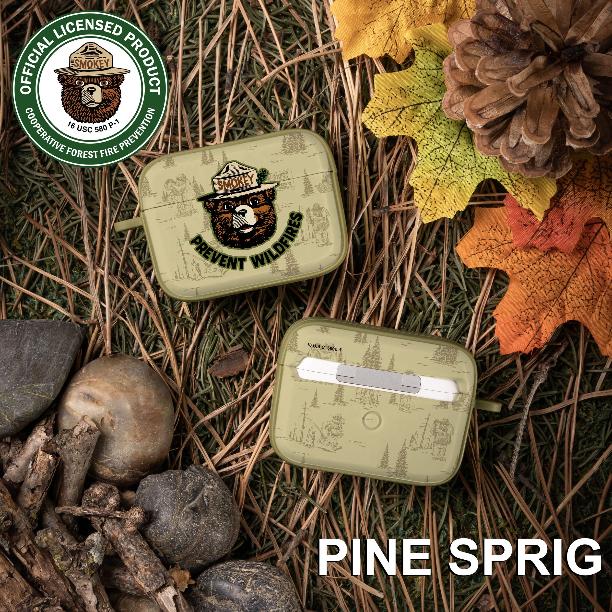 Smokey Bear Classic HDX Apple AirPods Pro 1 & 2 Case Cover ‐ Pine Sprig