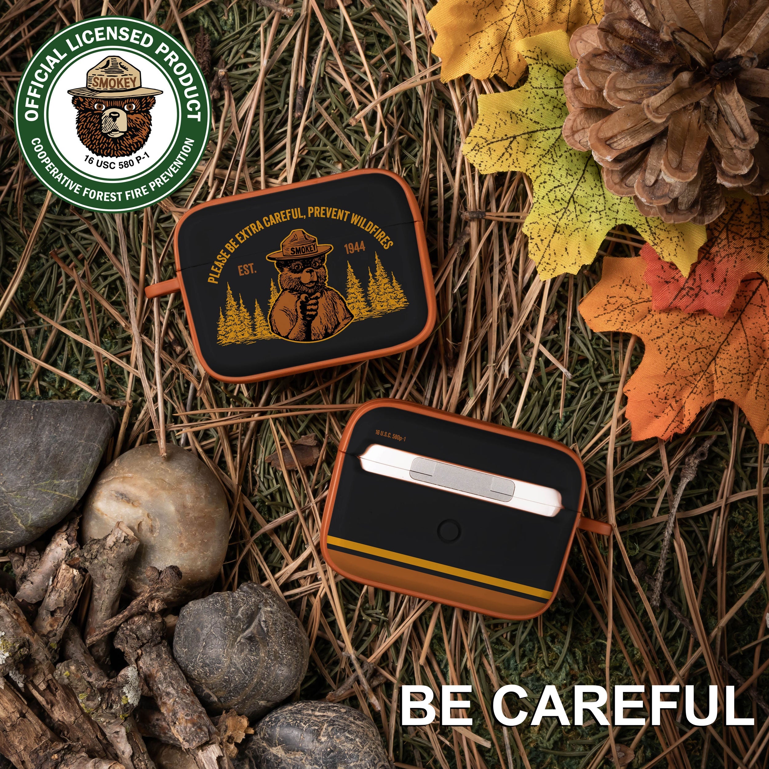Smokey Bear Classic HDX Apple AirPods Pro 1 & 2 Case Cover ‐ Be Careful