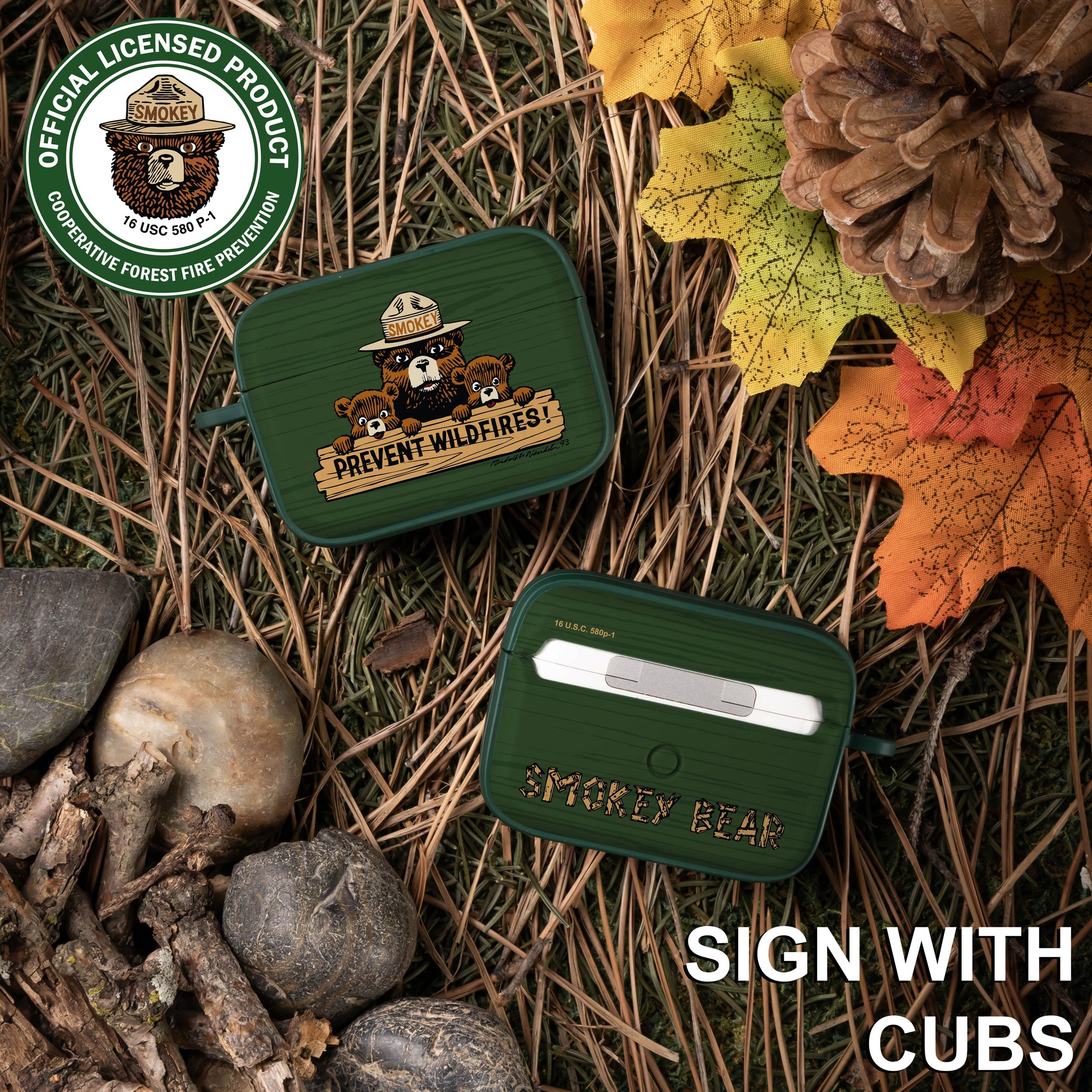 Smokey Bear Classic HDX Apple AirPods Pro 1 & 2 Case Cover ‐ Sign With Cubs