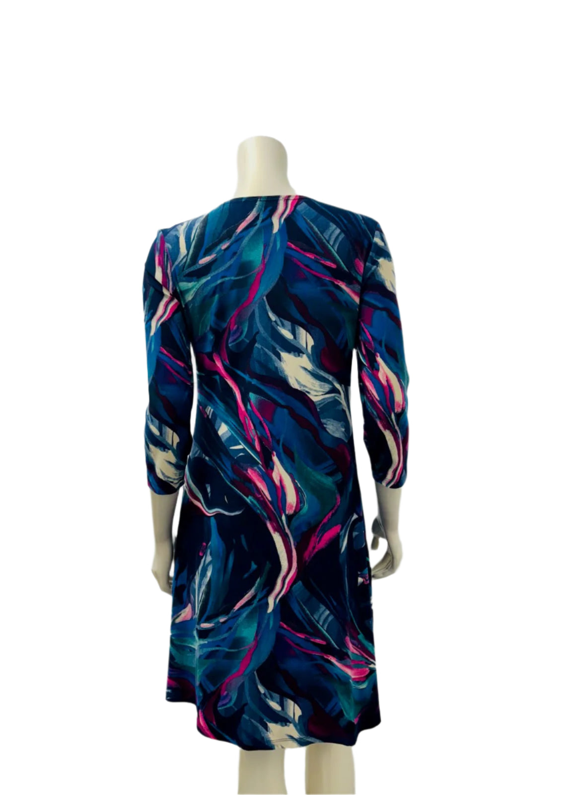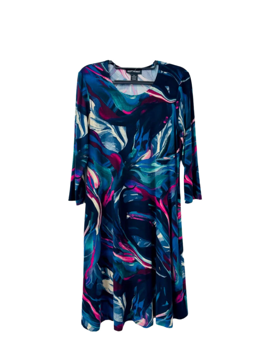 Soft Works A-Line Dress Featuring Round Neck, 3/4 Sleeves and Side Seam Pockets