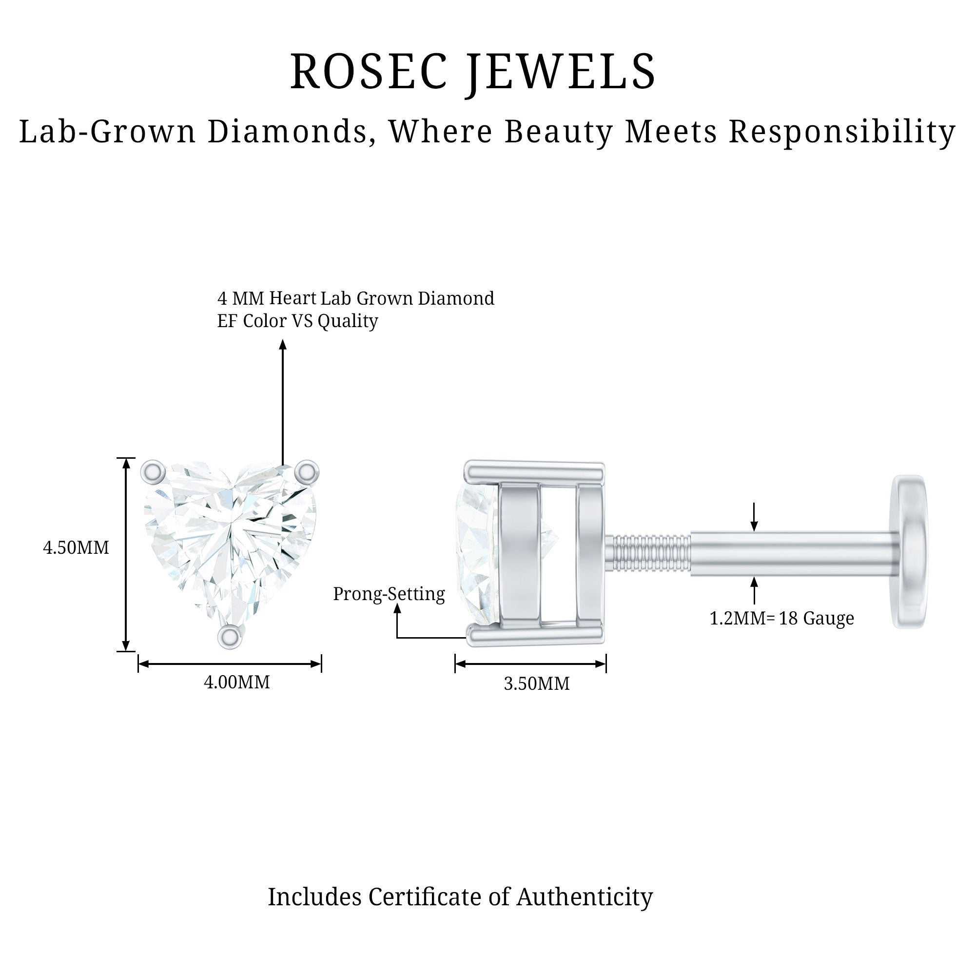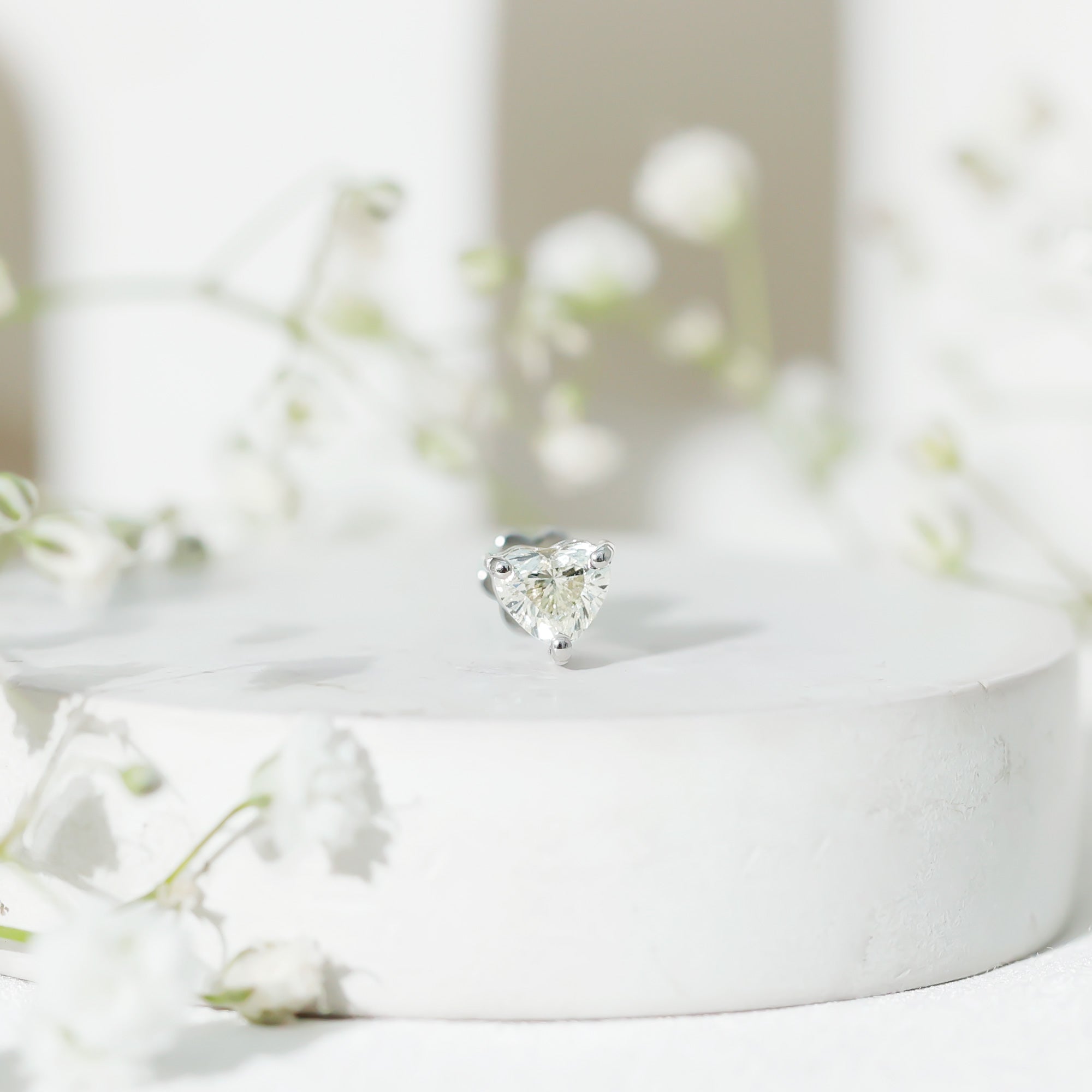 Solitaire Diamond Heart Earring with Flat Back ‐ Lab - ( EF-VS ) / 18K White Gold / Flat Back 4.5 MM