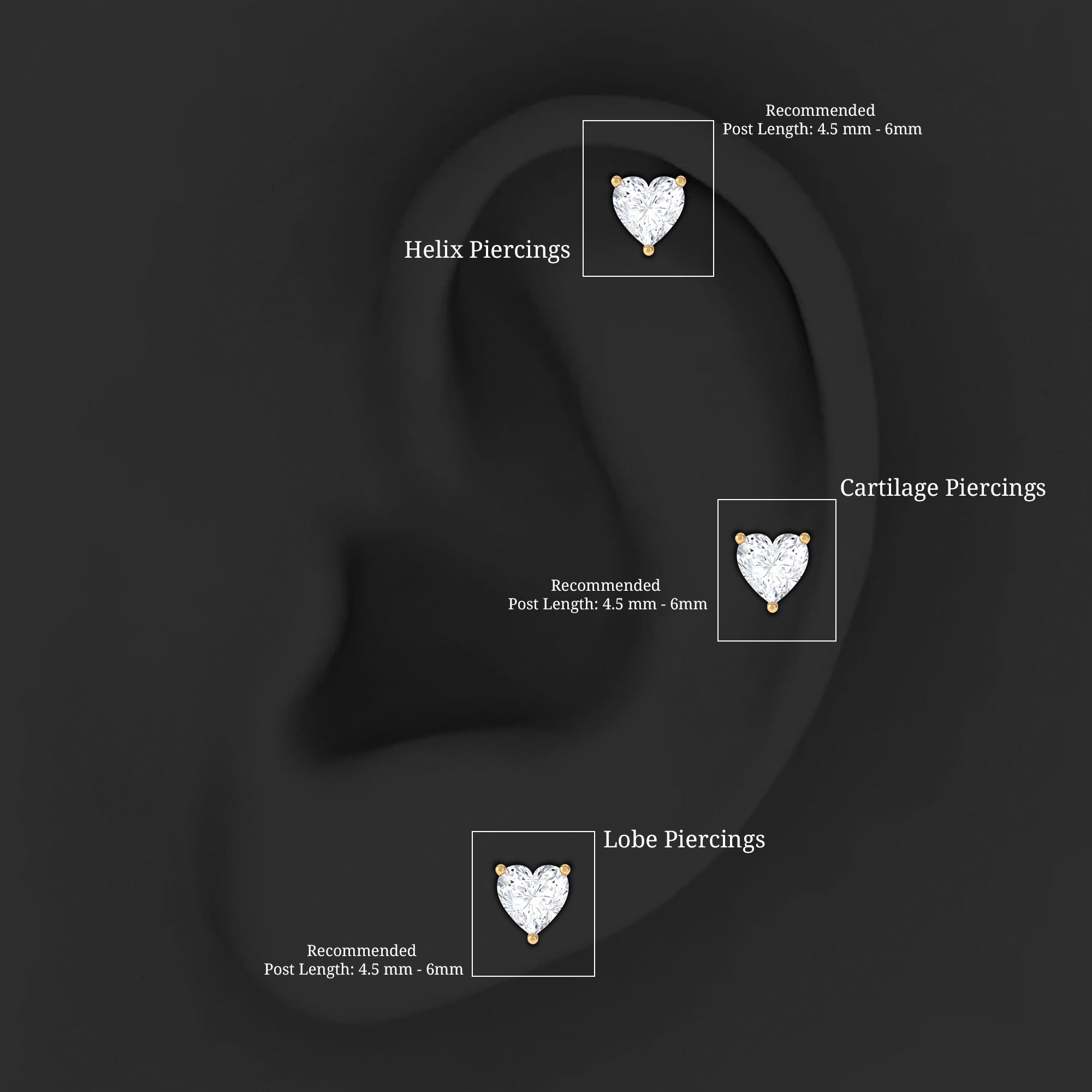 Solitaire Diamond Heart Earring with Flat Back ‐ Lab - ( EF-VS ) / 10K White Gold / Select Option