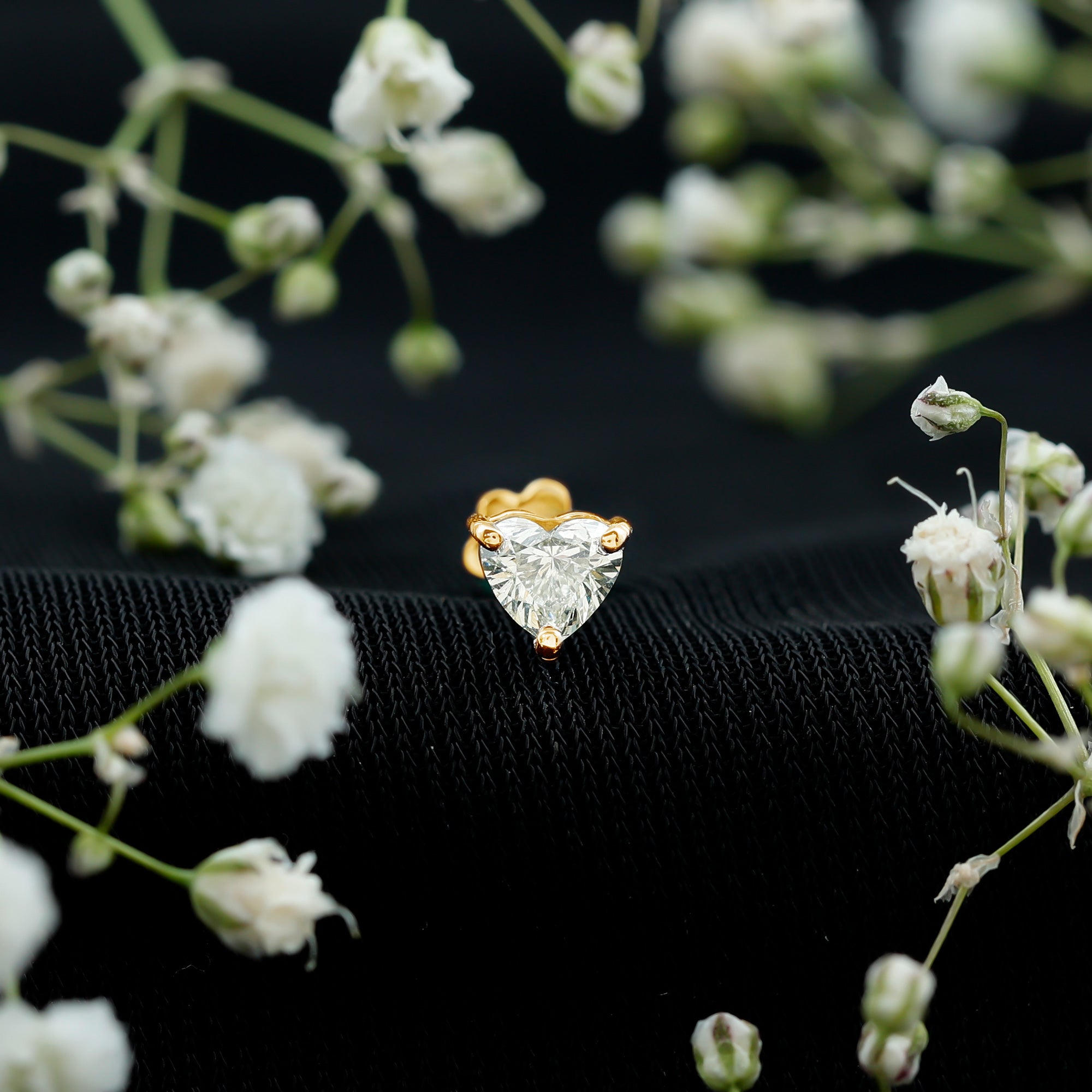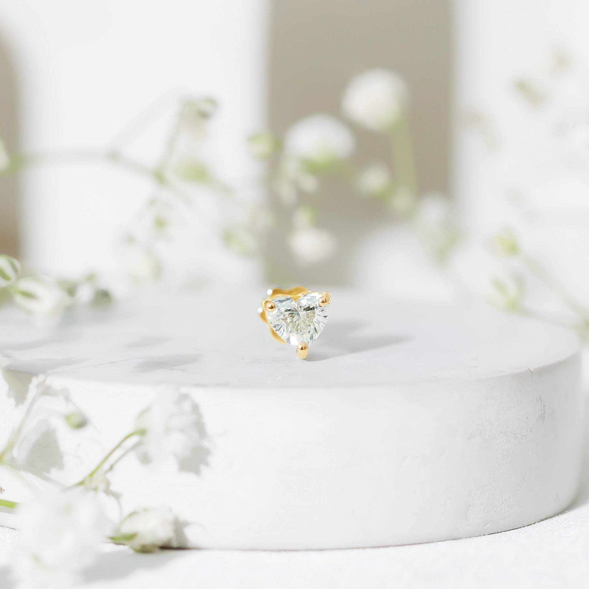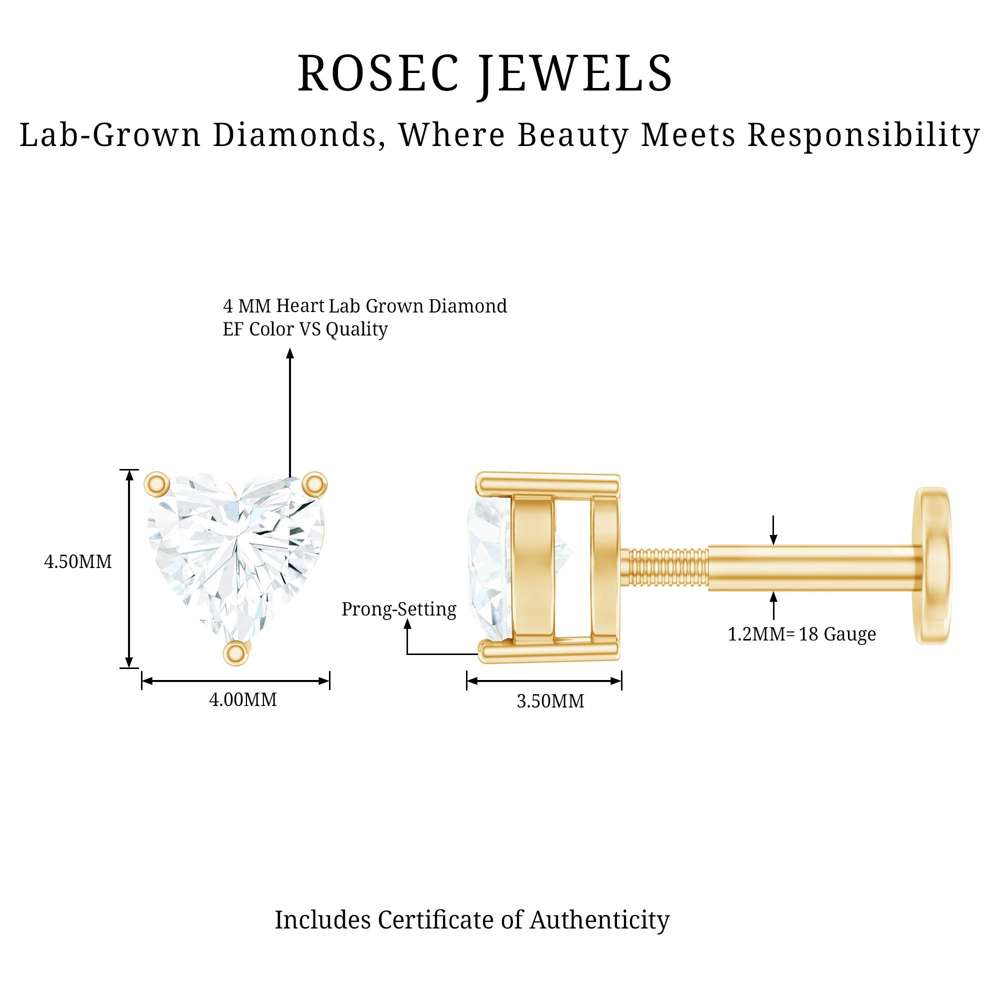 Solitaire Diamond Heart Earring with Flat Back ‐ Lab - ( EF-VS ) / 18K Yellow Gold / Flat Back 4.5 MM