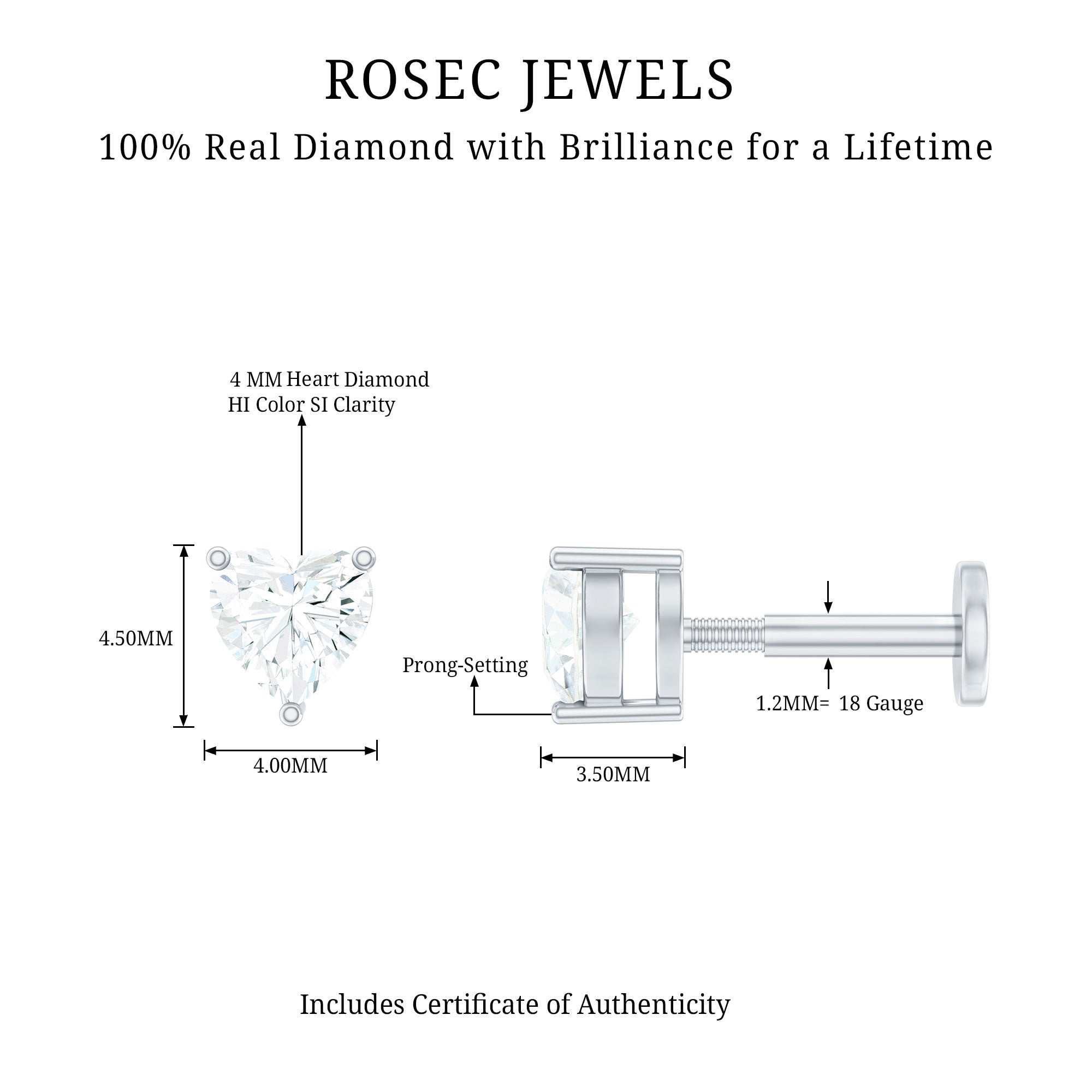 Solitaire Diamond Heart Earring with Flat Back ‐ Natural - ( HI-SI ) / 14K White Gold / Flat Back 4.5 MM