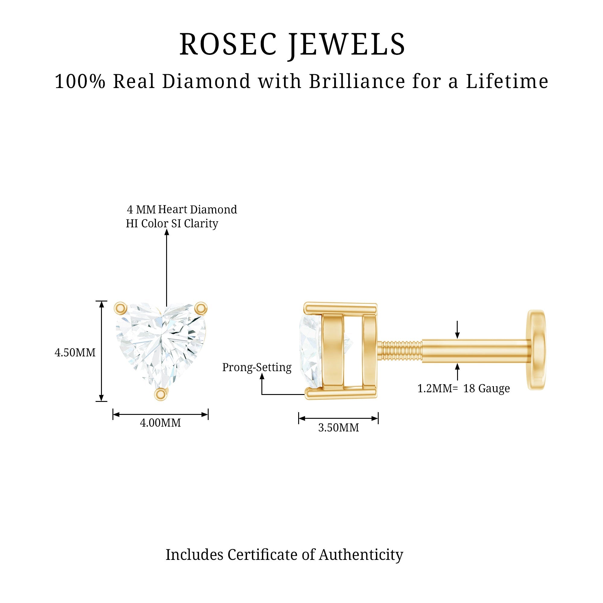Solitaire Diamond Heart Earring with Flat Back ‐ Natural - ( HI-SI ) / 14K Yellow Gold / Flat Back 4.5 MM