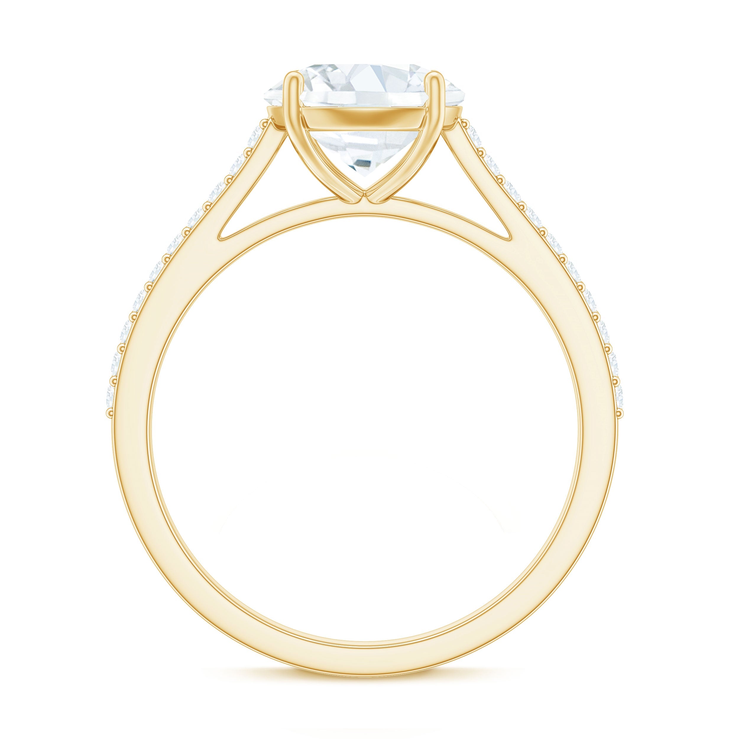 Solitaire Lab Grown Diamond Ring with Side Stones for Women ‐ Lab - ( EF-VS ) / 18K Yellow Gold / 4.5