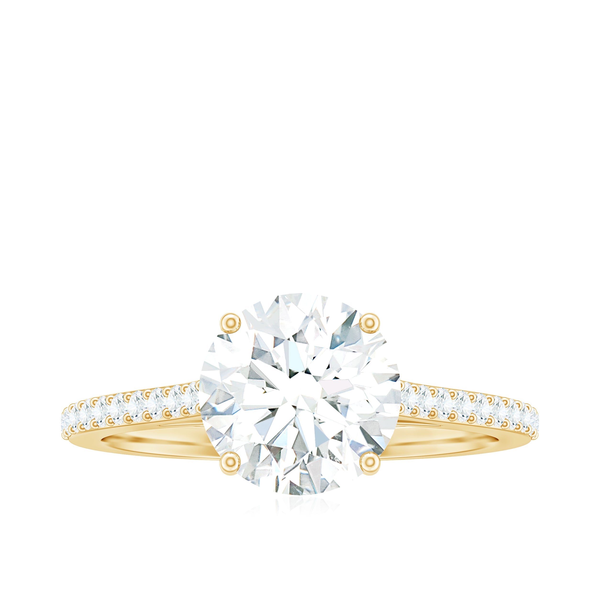 Solitaire Lab Grown Diamond Ring with Side Stones for Women ‐ Lab - ( EF-VS ) / 14K Yellow Gold / 4.5