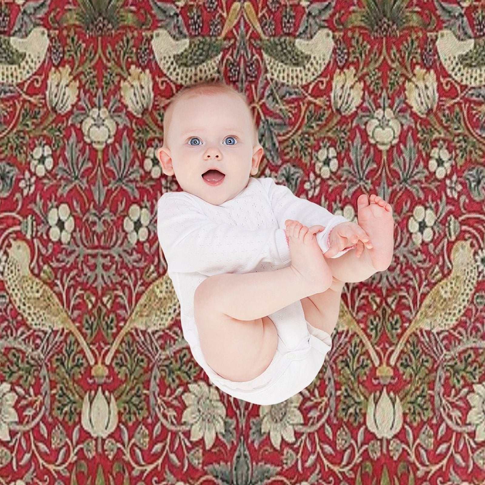 - Transform it into a bath towel, picnic blanket, yoga mat companion, or chic Strawberry Thief Crimson Vintage Pattern-inspired wall hanging.