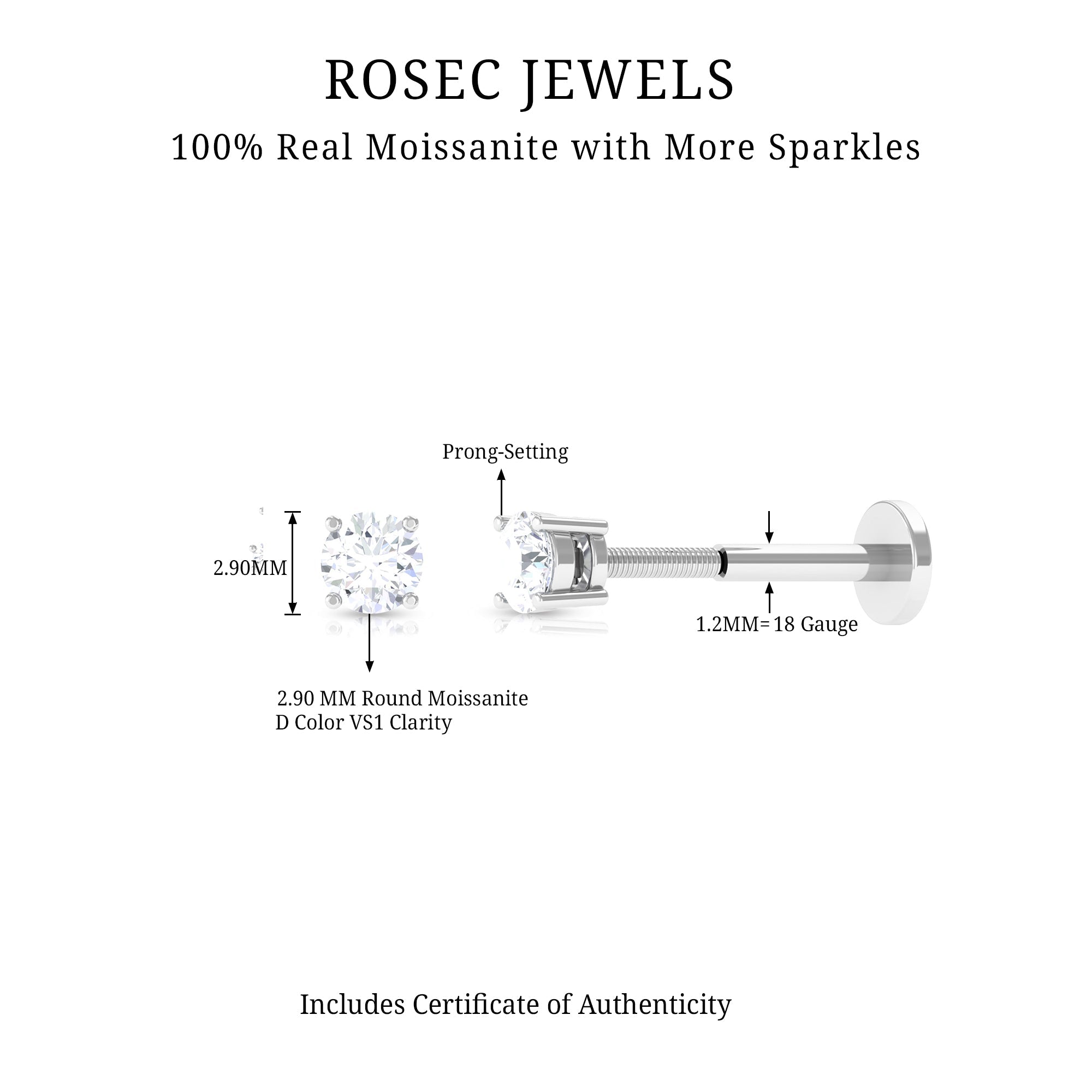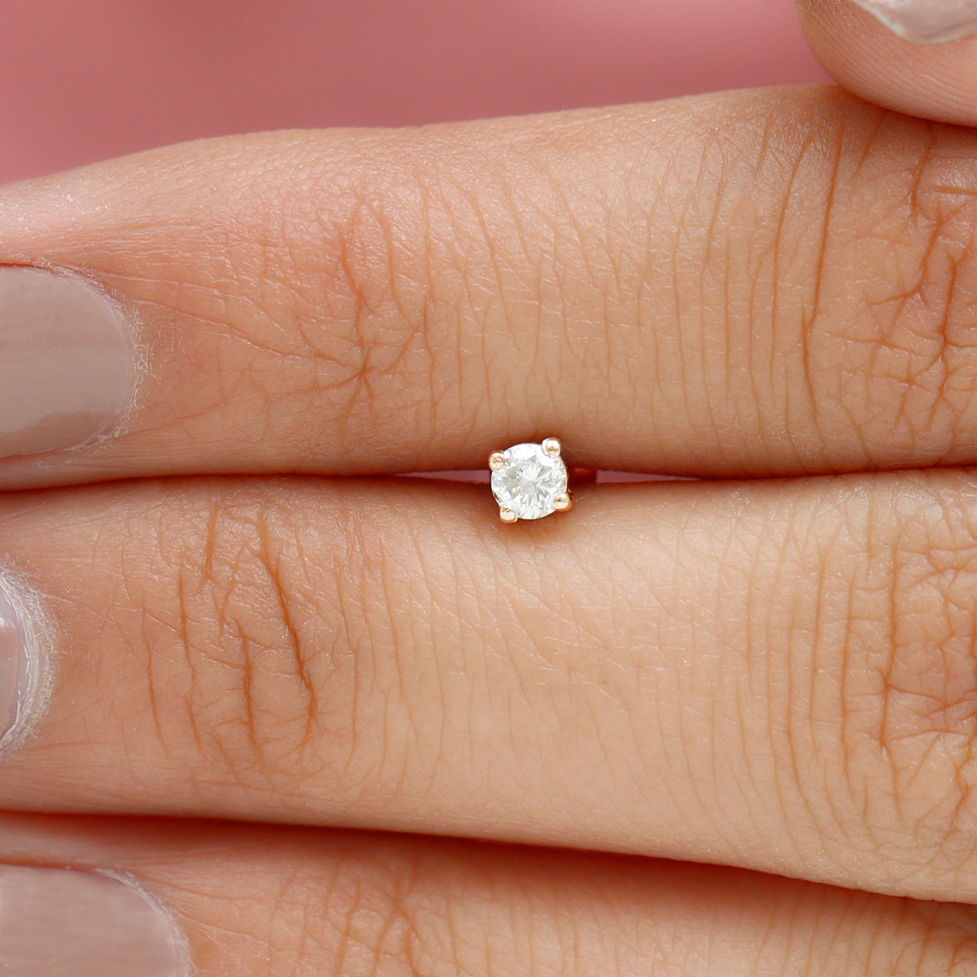 Tiny Round Moissanite Conch Earring in Gold ‐ D-VS1 / 14K White Gold / Flat Back 4.5 MM