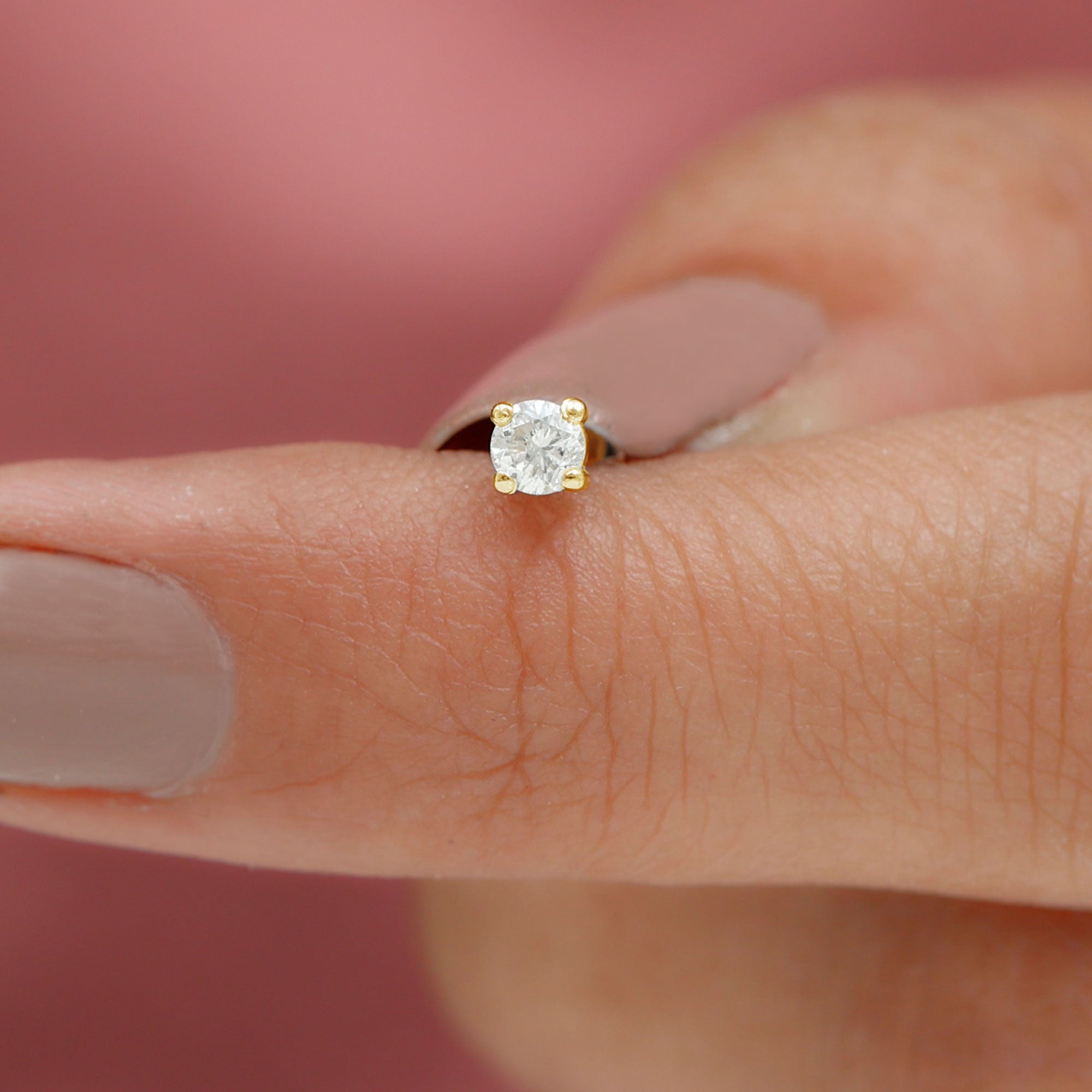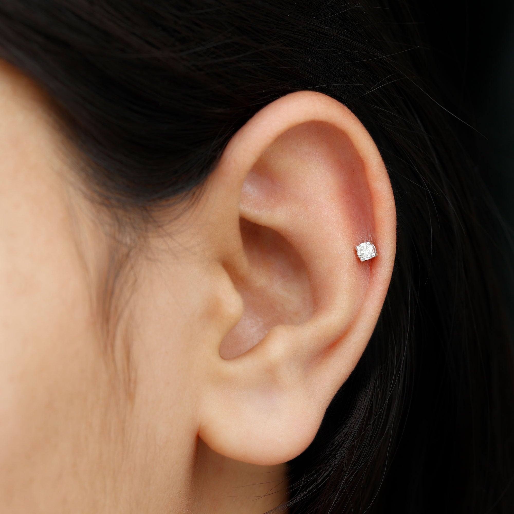 Enhance any outfit with the timeless elegance of this Moissanite Conch Earring. Featuring a small Round Cut Moissanite in a secure 4 Prong Setting, this classic piece of jewelry is perfect for any occasion. This Dainty Earring can be styled on your multiple piercings like Helix, Conch, Cartilage, Tragus, or Upper Lobe Piercing.