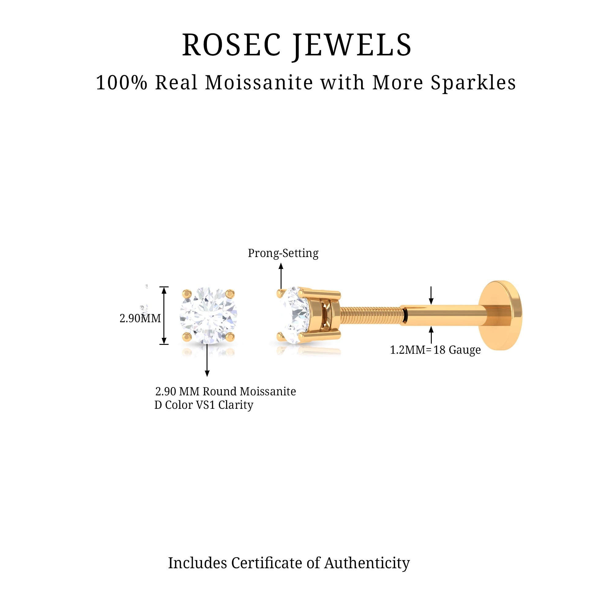 Tiny Round Moissanite Conch Earring in Gold ‐ D-VS1 / 14K Yellow Gold / Flat Back 4.5 MM
