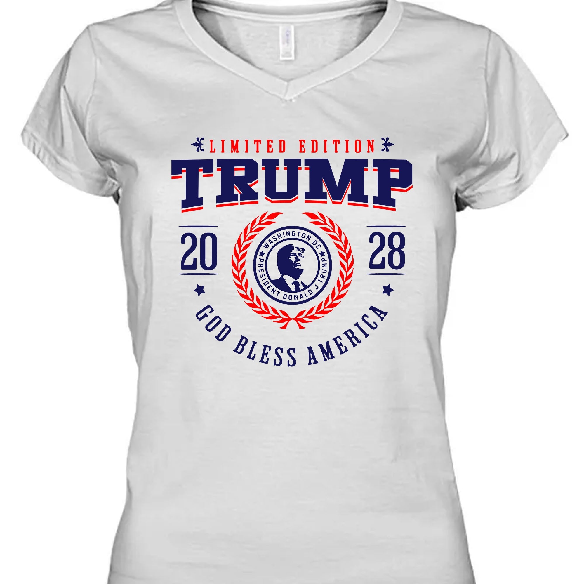 Trump 2028 Limited Edition Shirt | God Bless America T-Shirt | Patriotic Shirt | Independence Day Tee 682284 ‐ Women V-neck / V White / S