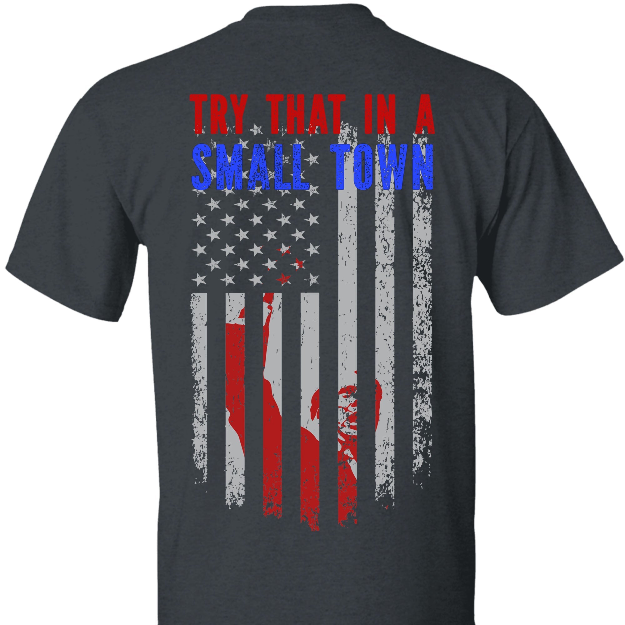 Try That In A Small Town, Trump Fight 2024 Shirt, Republican Shirt, Trump Supporters Backside Shirt Dark T1354 - GOP