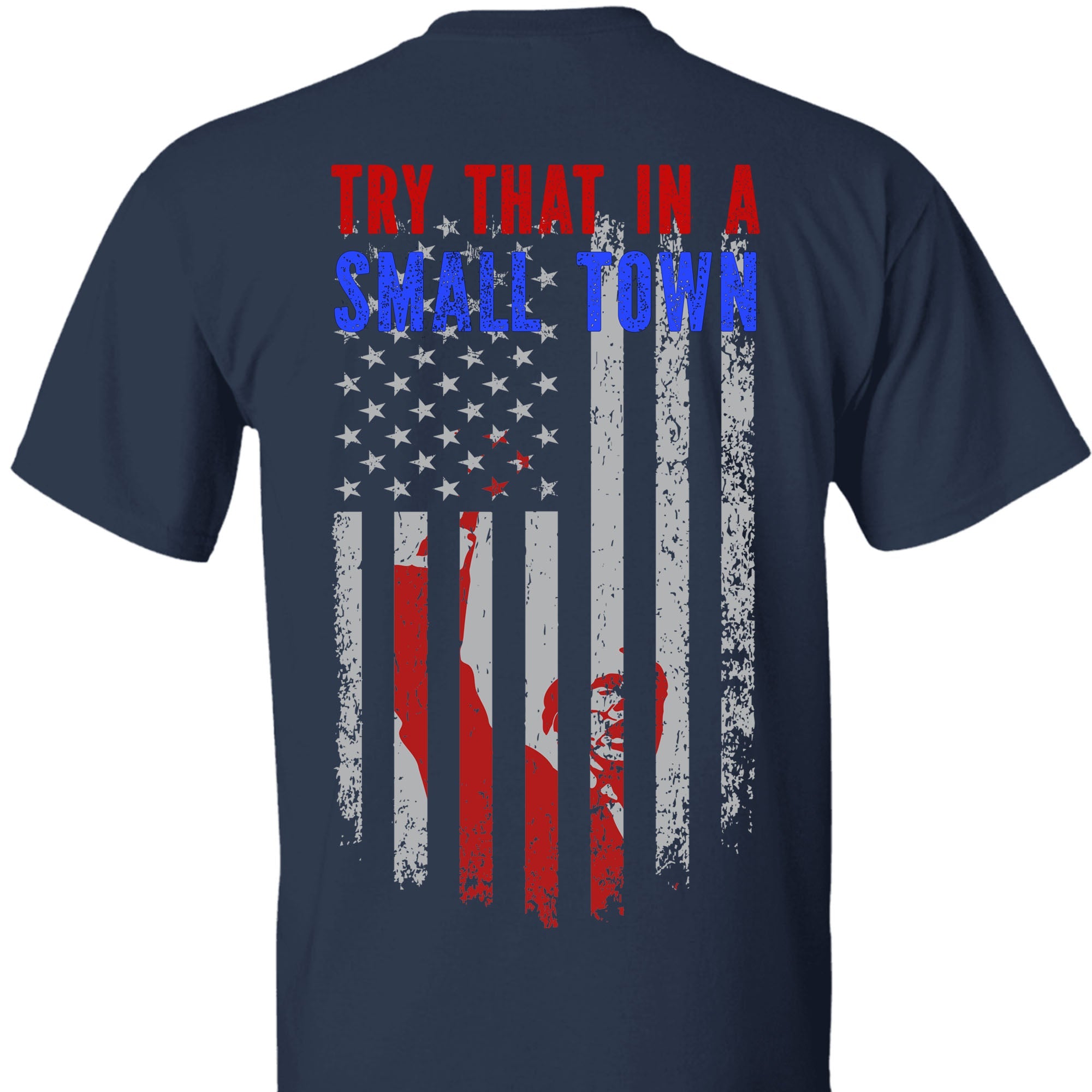 Try That In A Small Town, Trump Fight 2024 Shirt, Republican Shirt, Trump Supporters Backside Shirt Dark T1354 - GOP ‐ Basic Tee / Navy / S