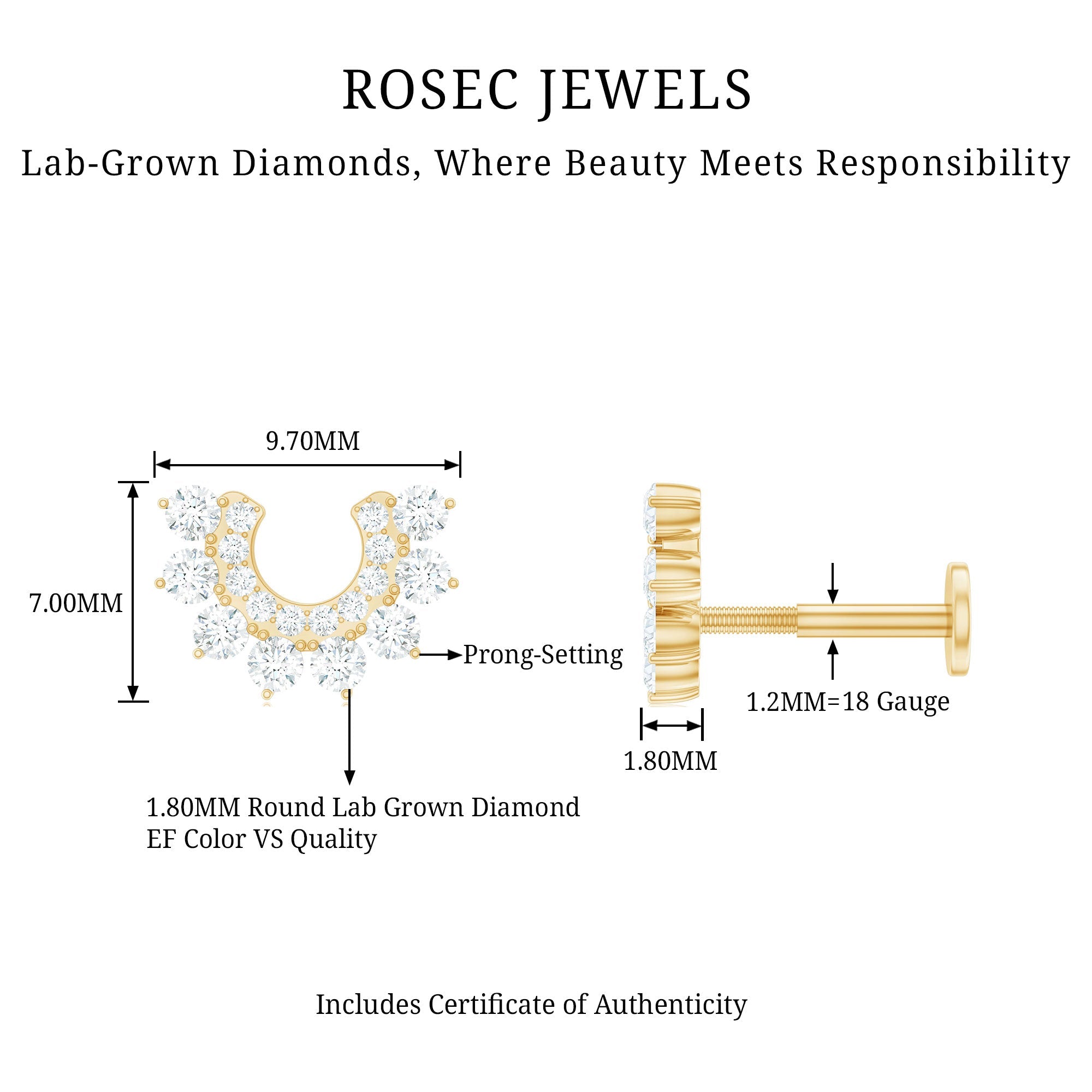 Unique Diamond Curved Earring for Helix Piercing ‐ Lab - ( EF-VS ) / 10K White Gold / Flat Back 7.5 MM