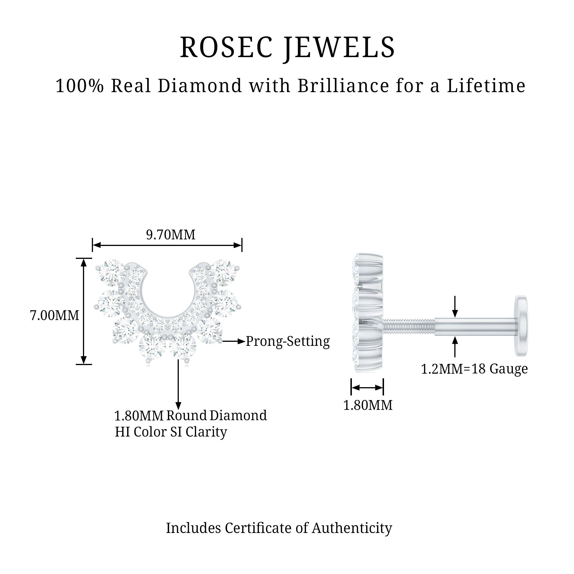 Unique Diamond Curved Earring for Helix Piercing ‐ Natural - ( HI-SI ) / 14K White Gold / Flat Back 7.5 MM