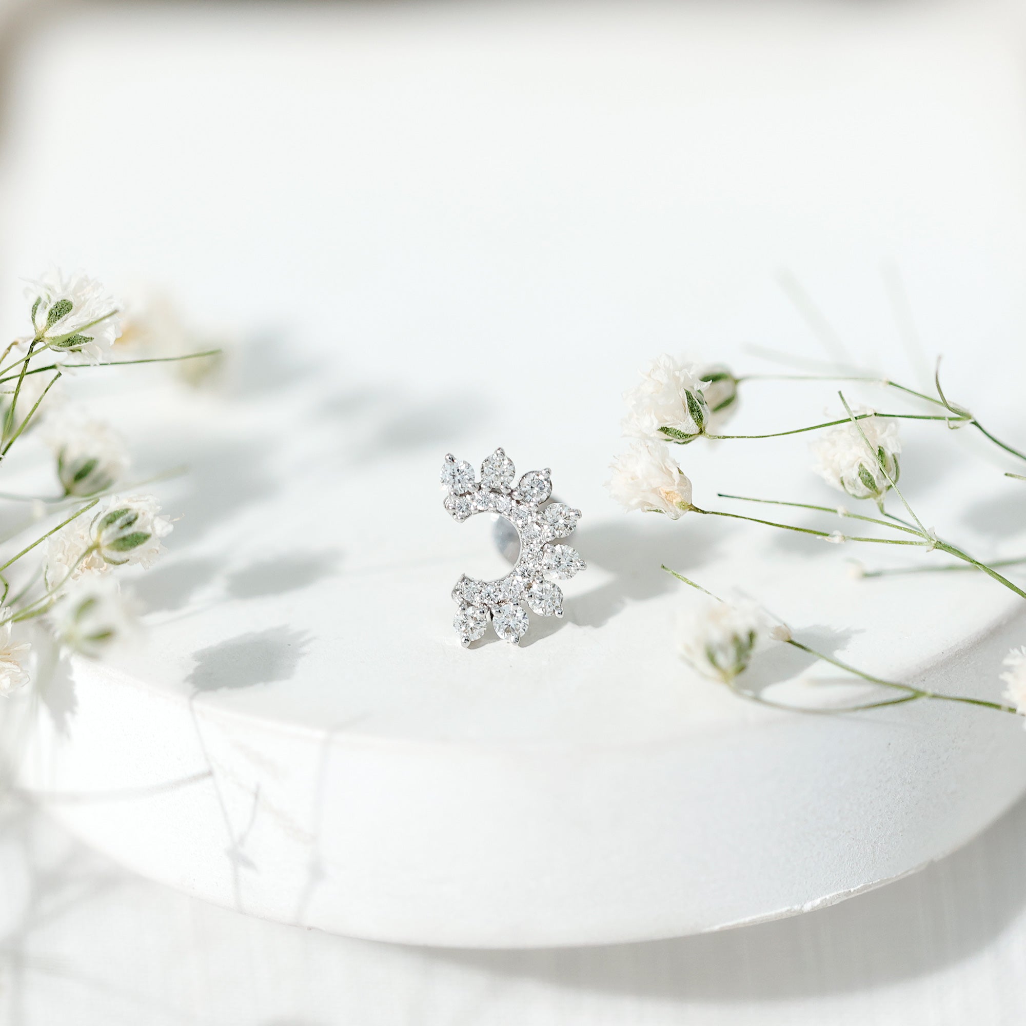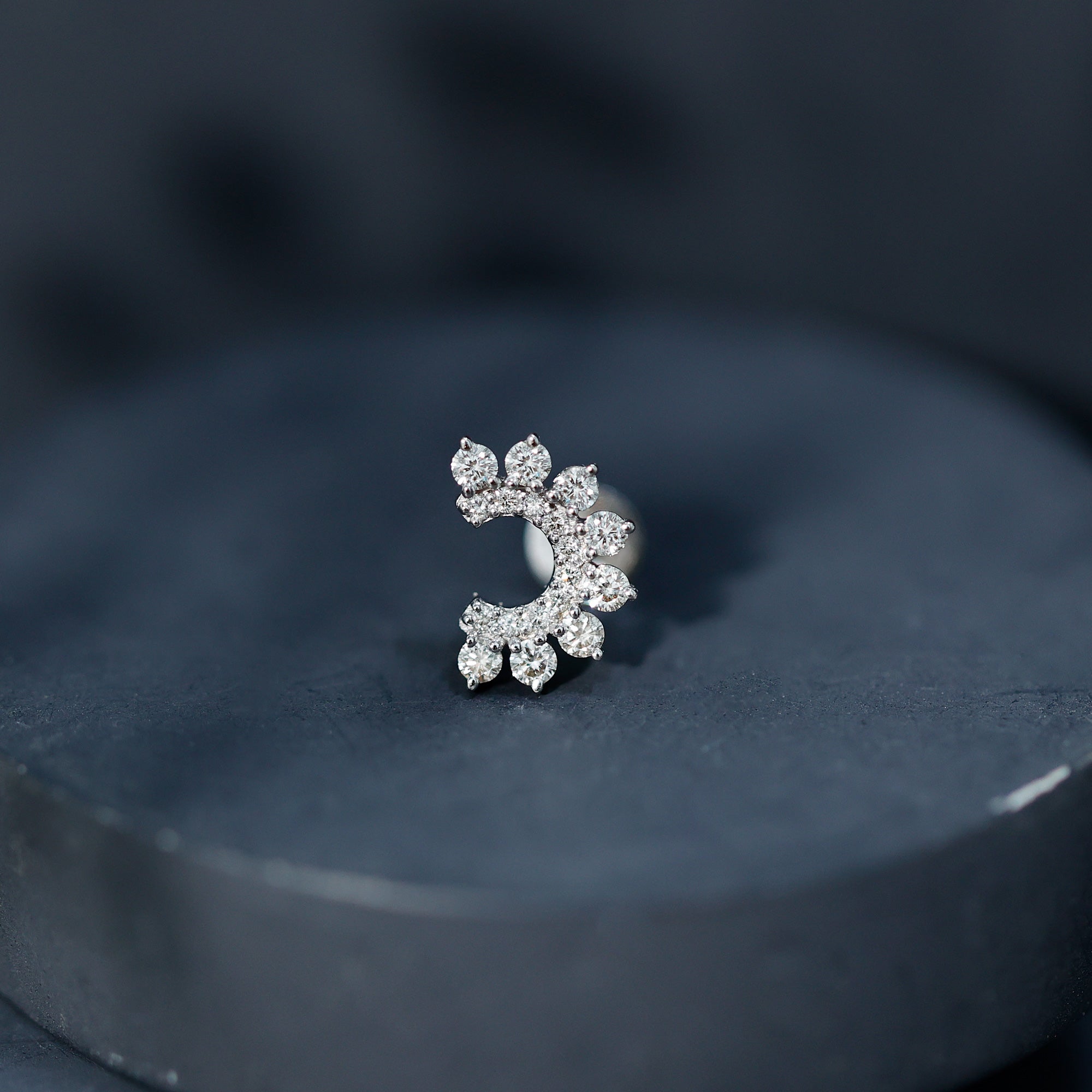 Unique Diamond Curved Earring for Helix Piercing ‐ Lab - ( EF-VS ) / 18K White Gold / Flat Back 5.0 MM