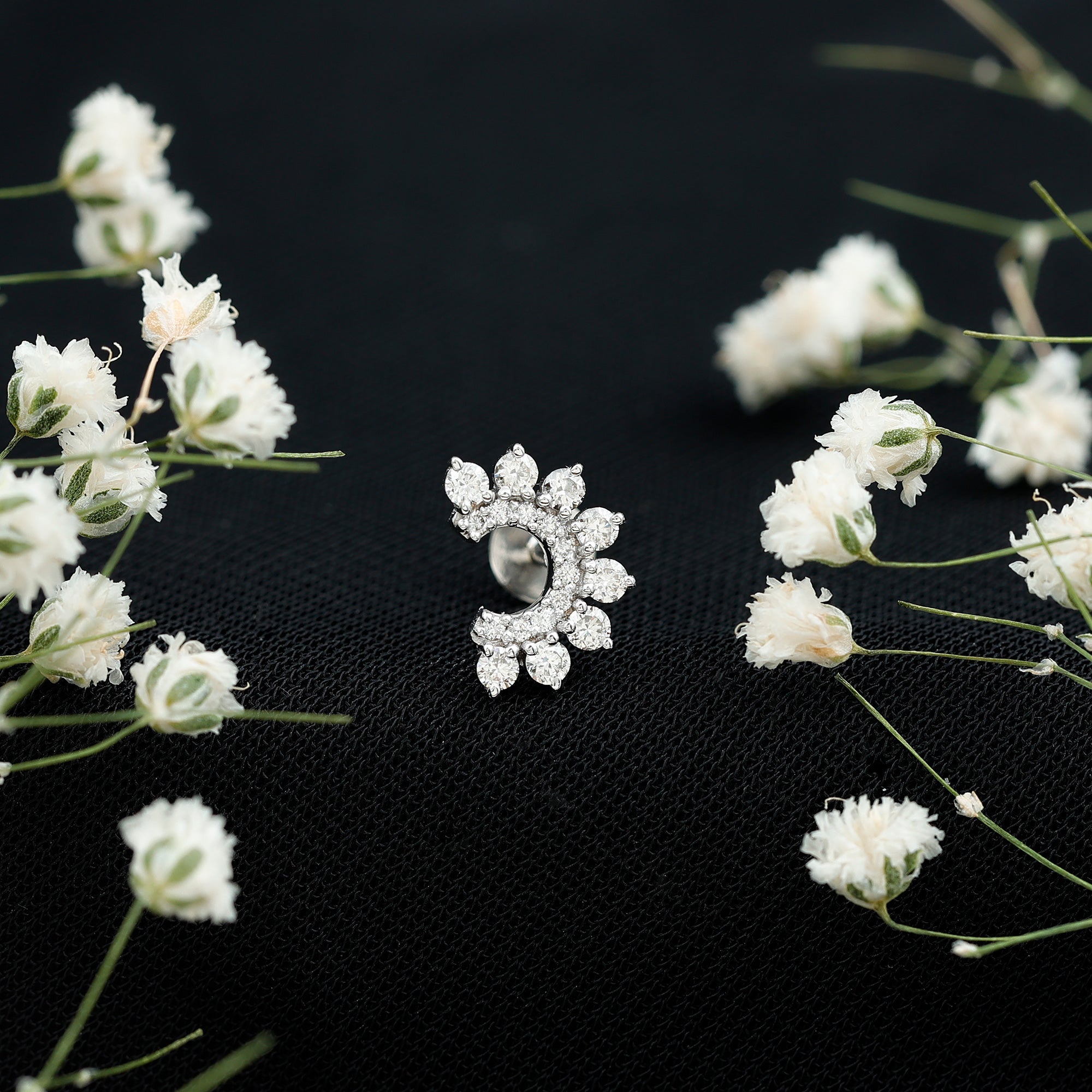 Unique Diamond Curved Earring for Helix Piercing ‐ Lab - ( EF-VS ) / 18K White Gold / Select Option