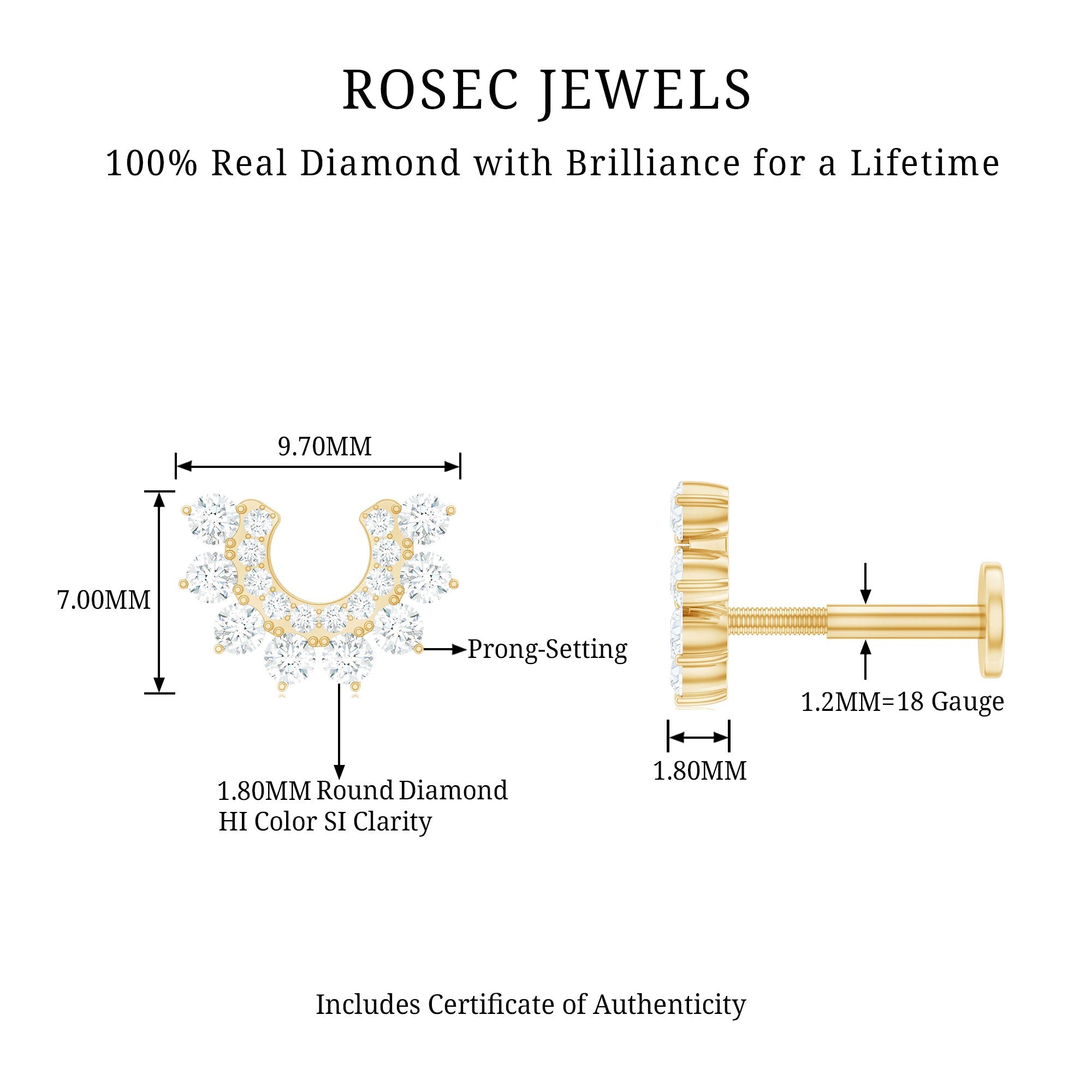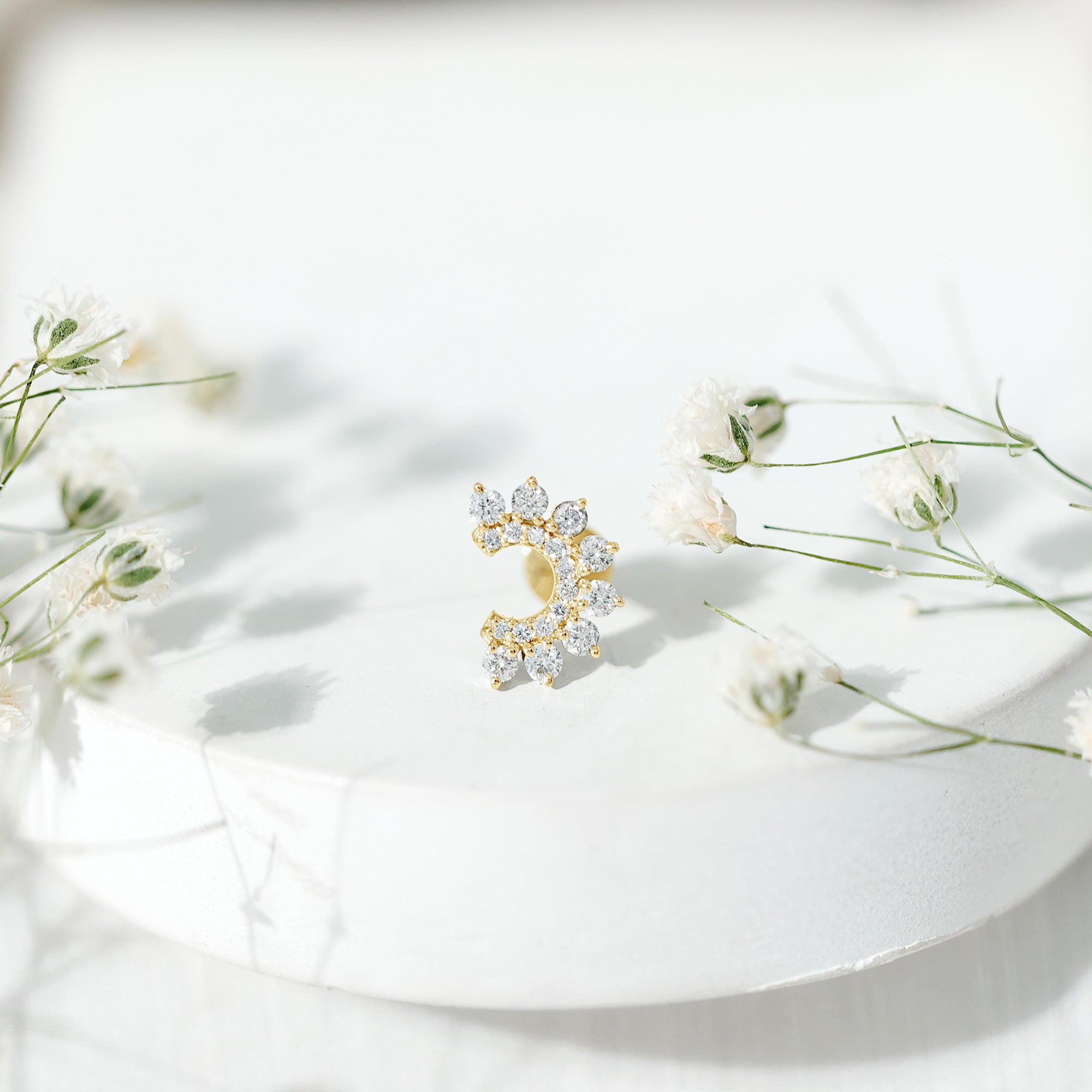 Unique Diamond Curved Earring for Helix Piercing ‐ Natural - ( HI-SI ) / 18K Yellow Gold / Flat Back 5.0 MM