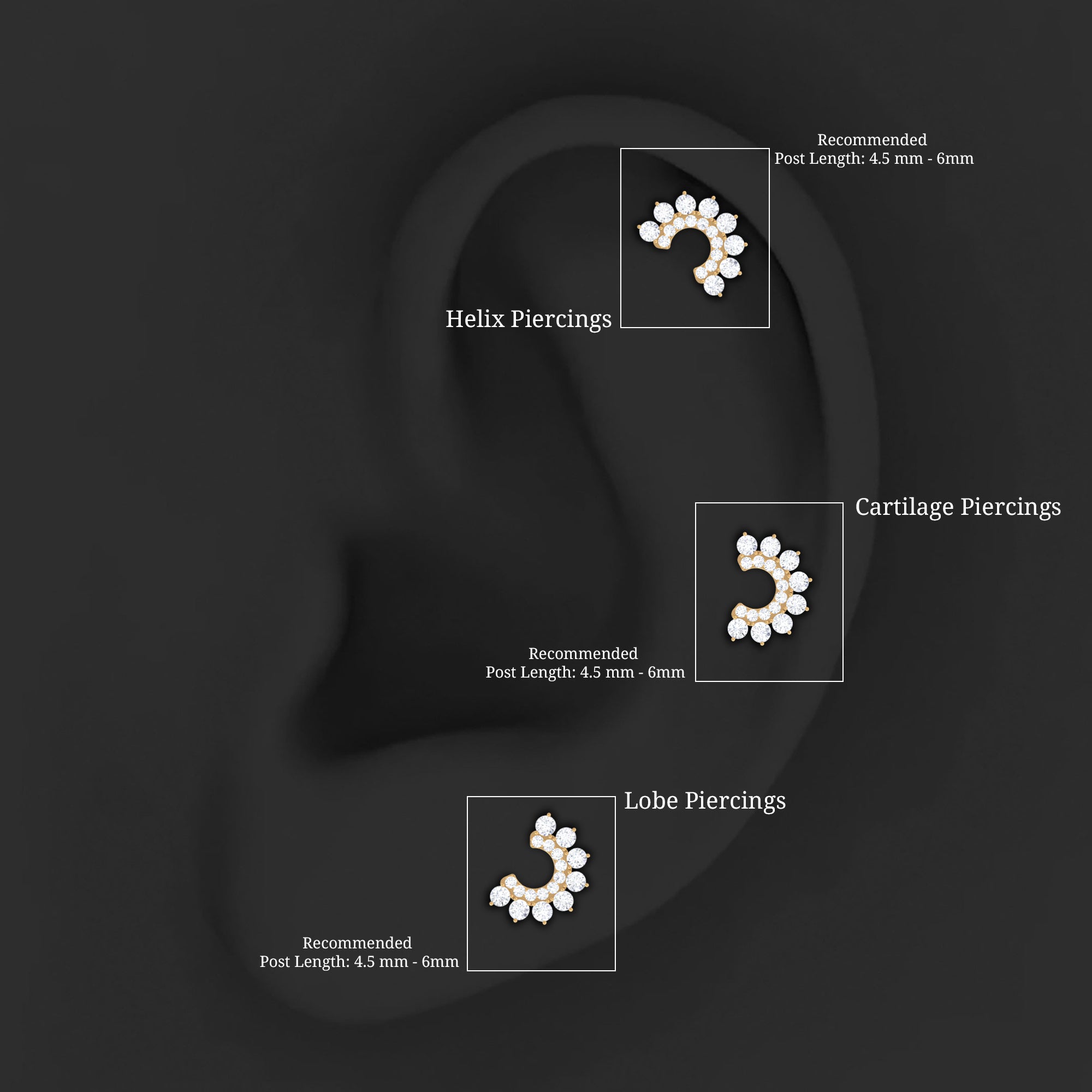 Unique Diamond Curved Earring for Helix Piercing ‐ Lab - ( EF-VS ) / 10K White Gold / Select Option