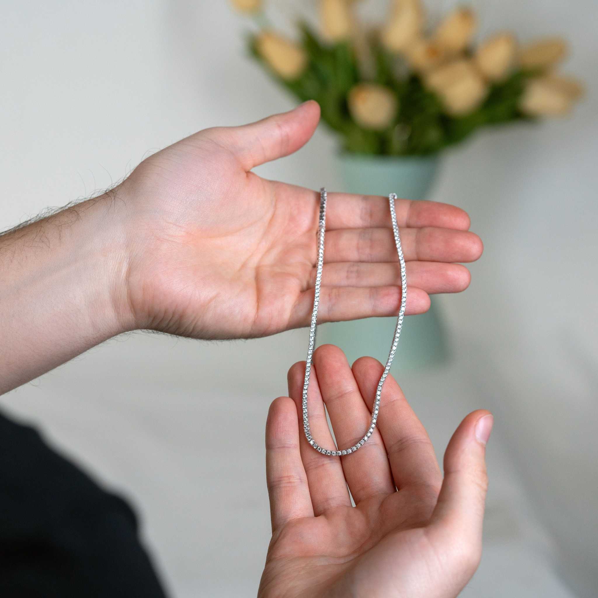 Men's or Ladies Tennis Chain 7.97ct (20 inch), 9.59ct (24 inch) moissanite stones passes diamond tester.
