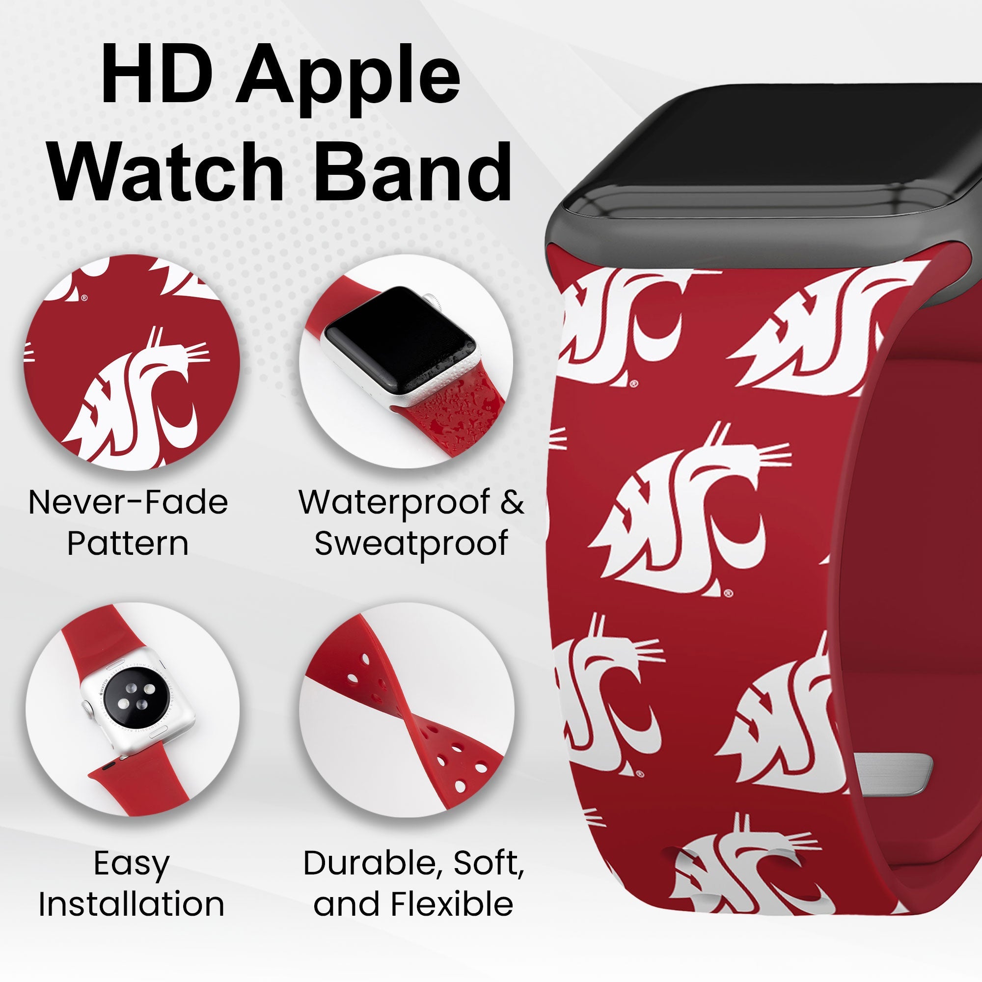 Washington State Cougars HD Apple Watch Band